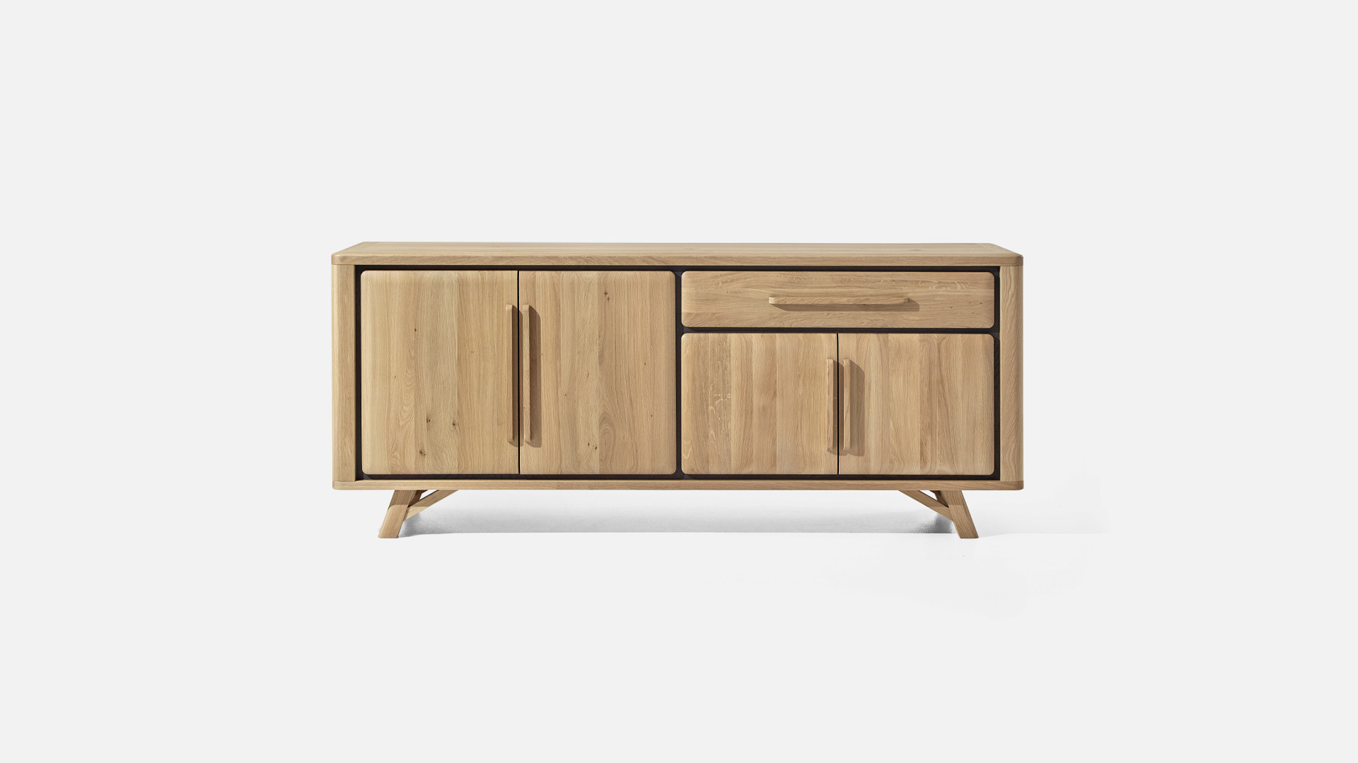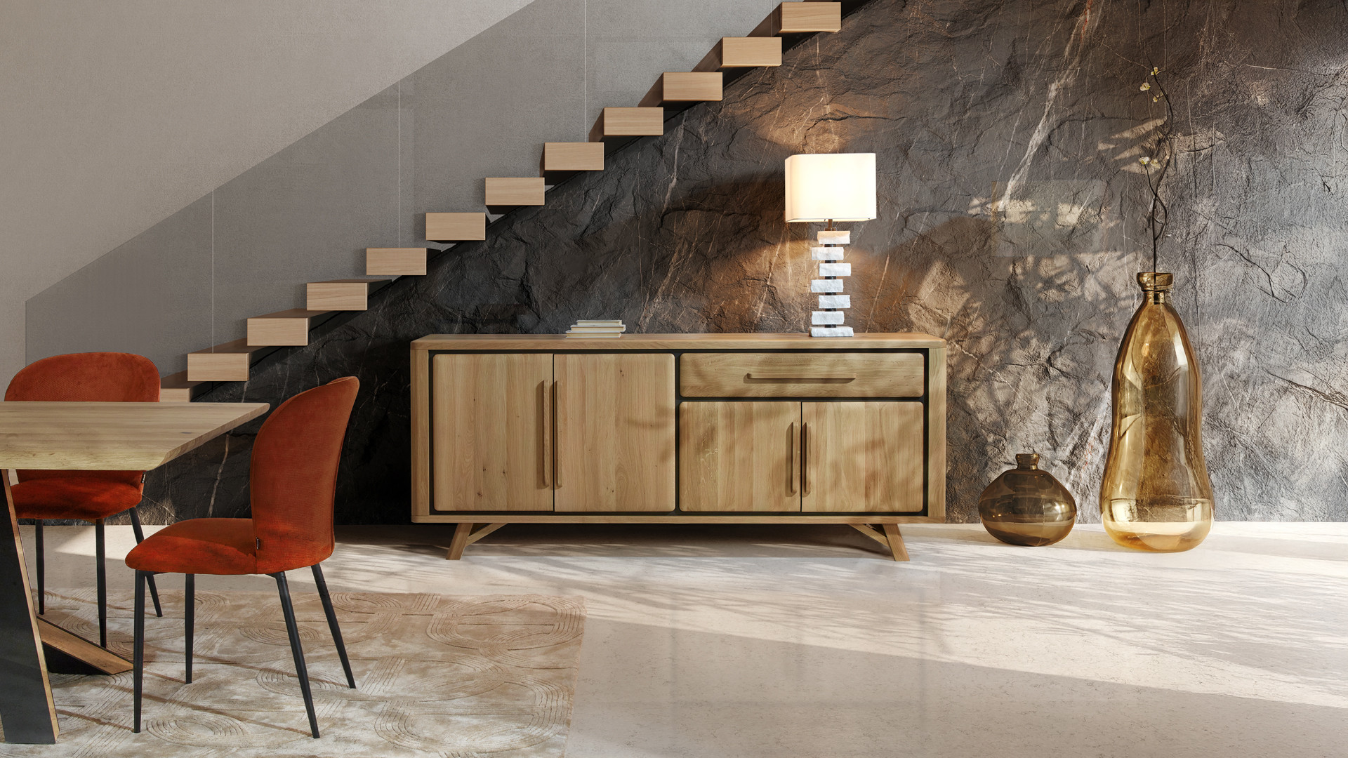Prix de lancement : buffet 4 portes 1 tiroirs, finition chêne clair satiné CCS / fond Siena.