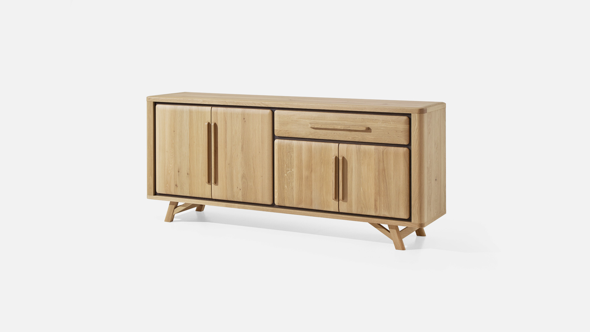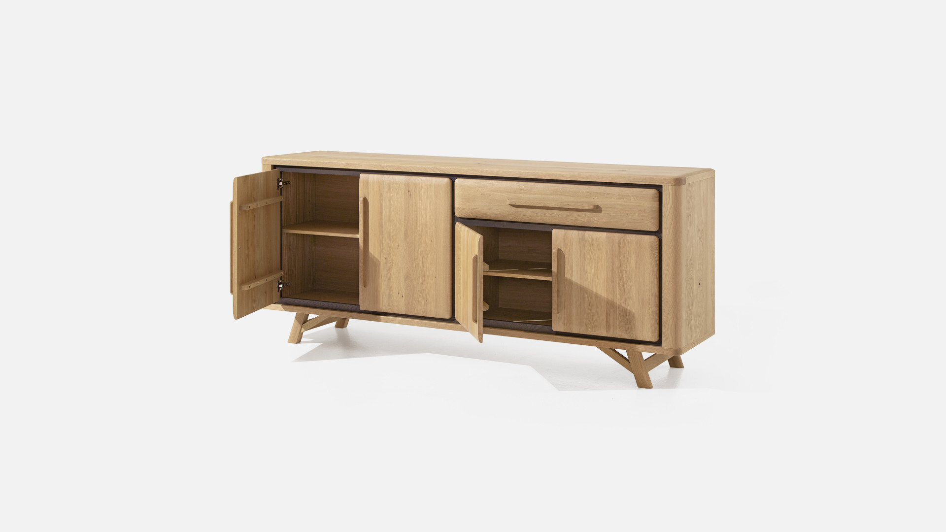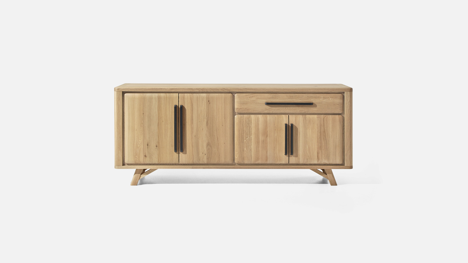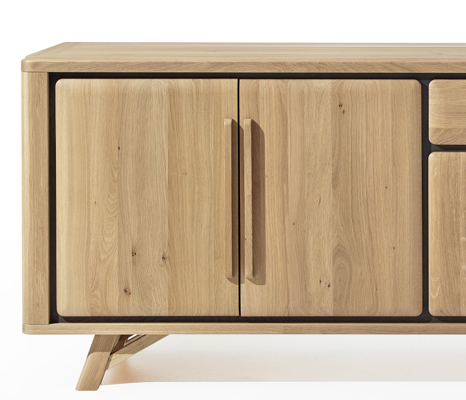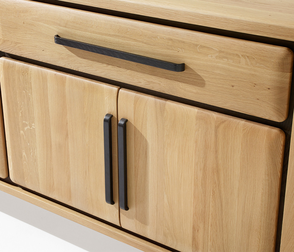 Structure, portes, tiroir et poignées en chêne massif ép. 20 mm