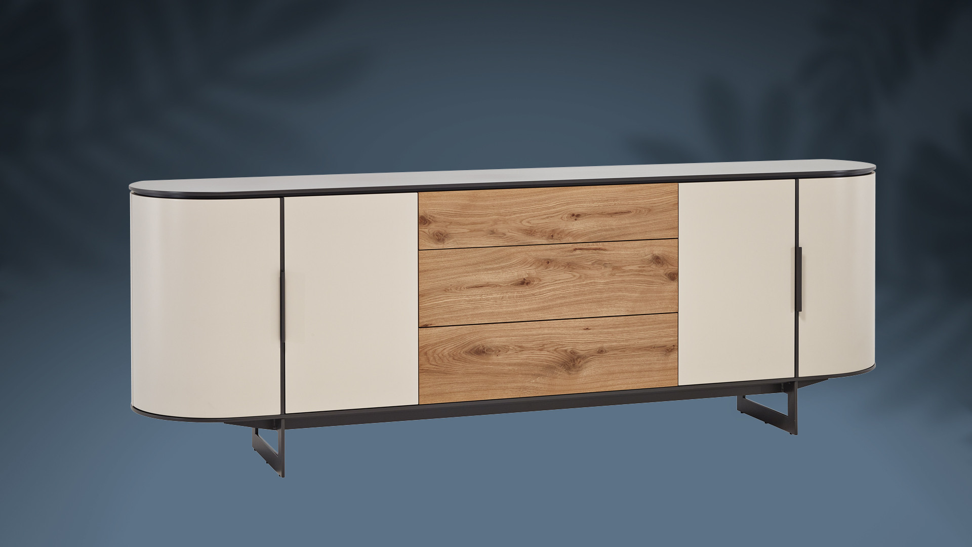 Façade des tiroirs en laque sur panneau de fibres de moyenne densité épaisseur 19mm ouverture système TIP-ON.