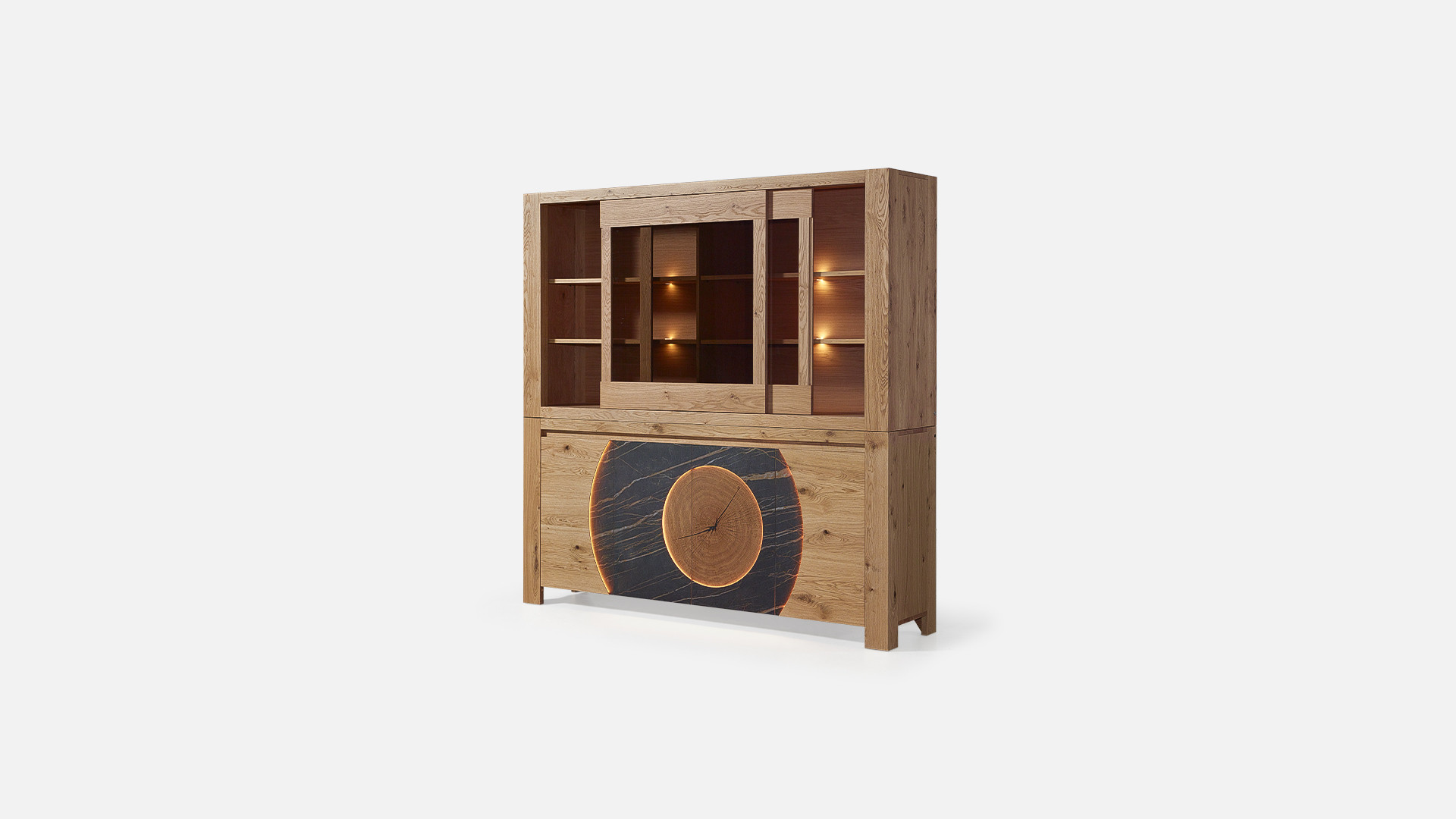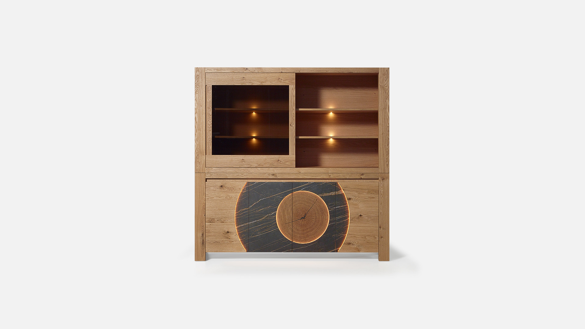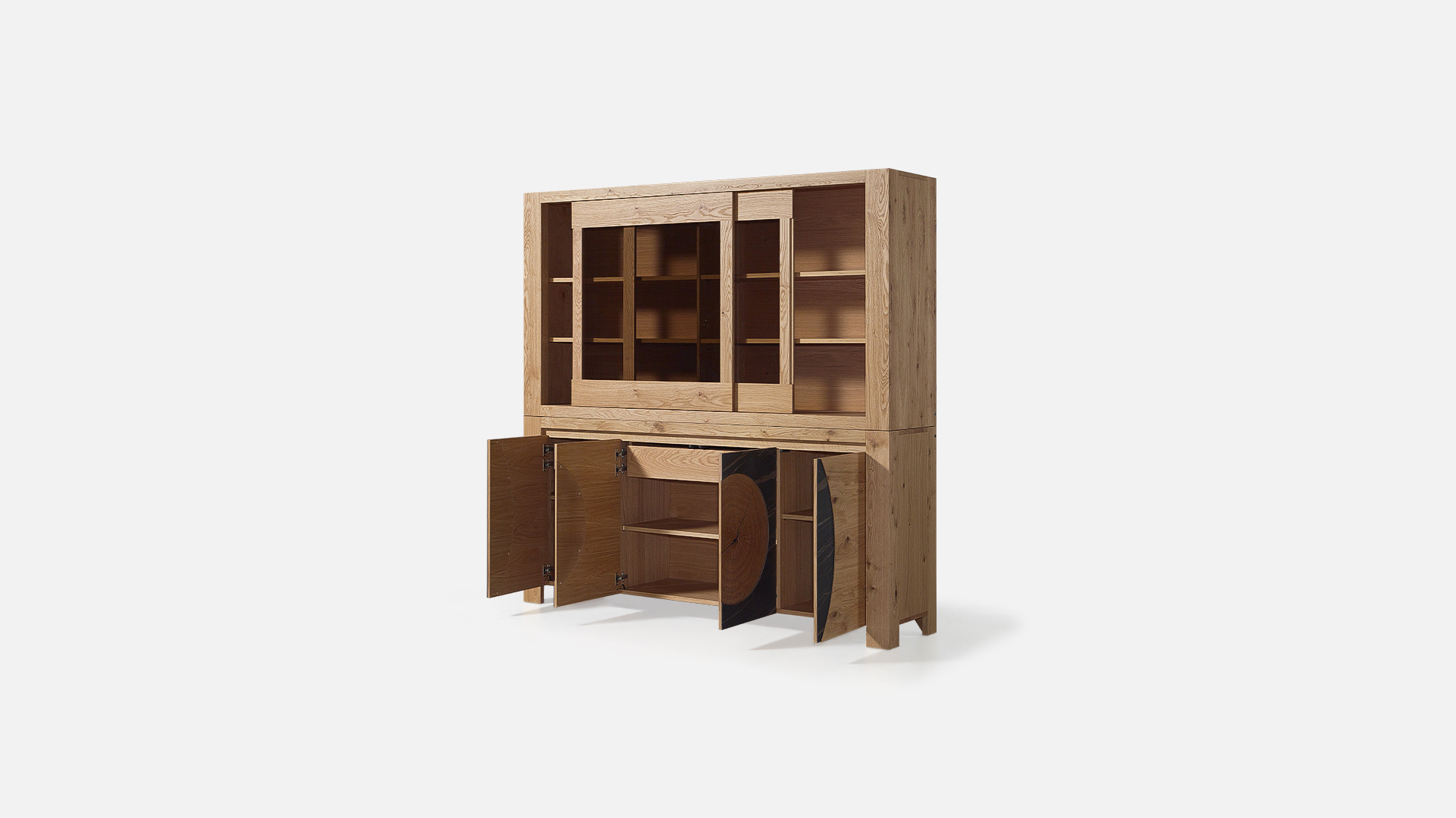 Façade de portes placage chêne sur panneau de fibre de moyenne densité ép. 25 mm, céramique épaisseur 3,5 mm (variable selon la céramique choisie)