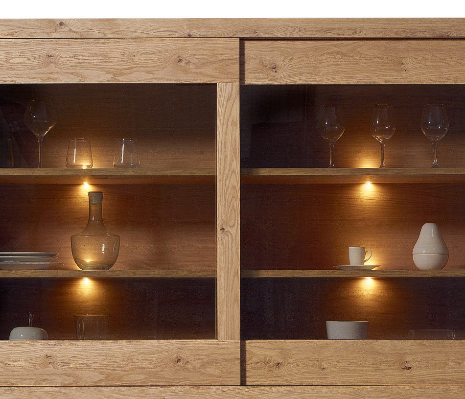 Éclairage LED réglable en intensité dans les portes et étagères en option -