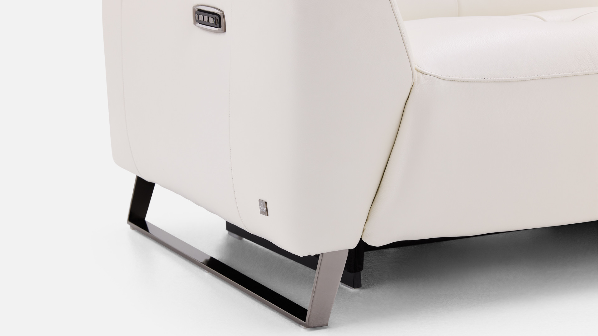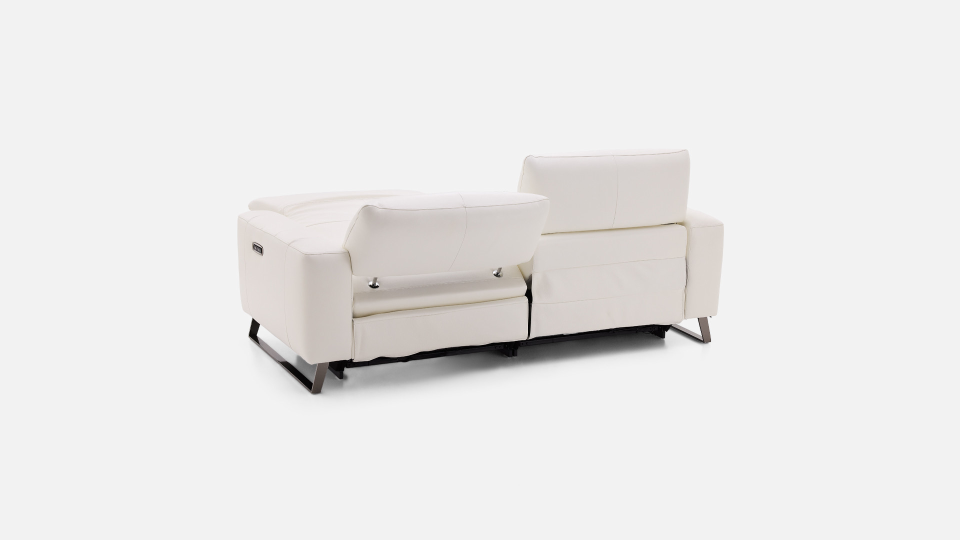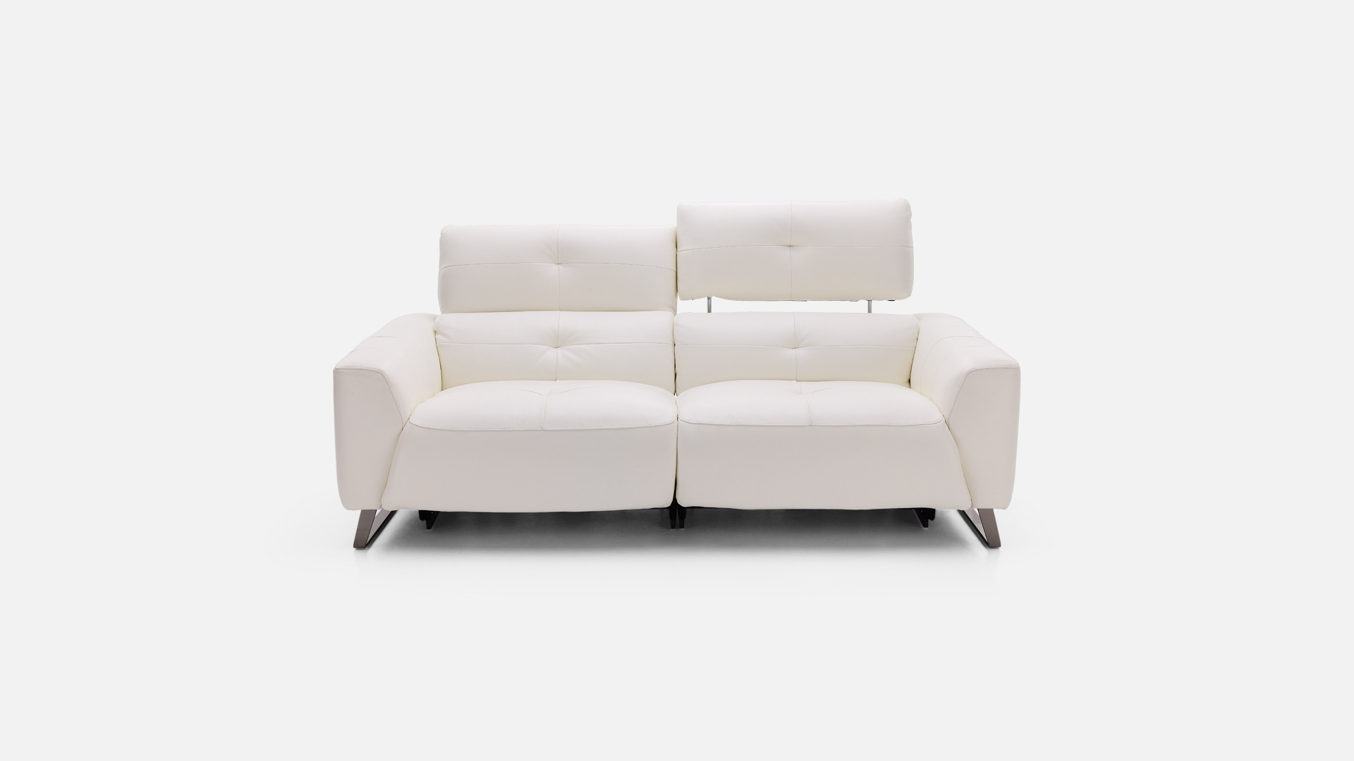 Sa version 4 moteurs (2 par assise) permet de régler indépendamment la têtière télescopique (jusqu’à la position lecture) et l’inclinaison du siège avec son repose-pieds intégré. Avec 6 moteurs, vous réglerez en plus l’intensité du soutien lombaire, comme dans les automobiles haut de gamme.