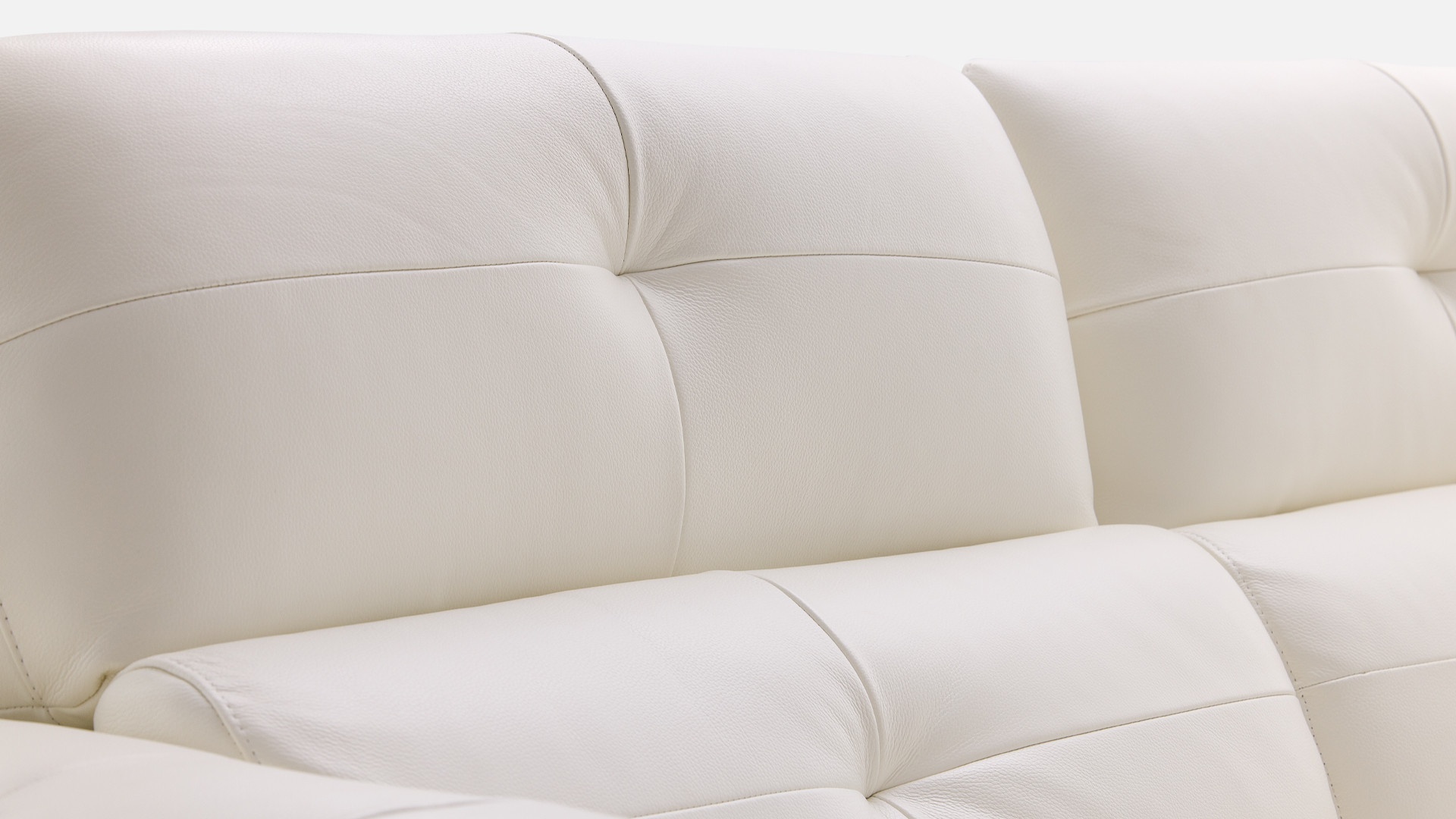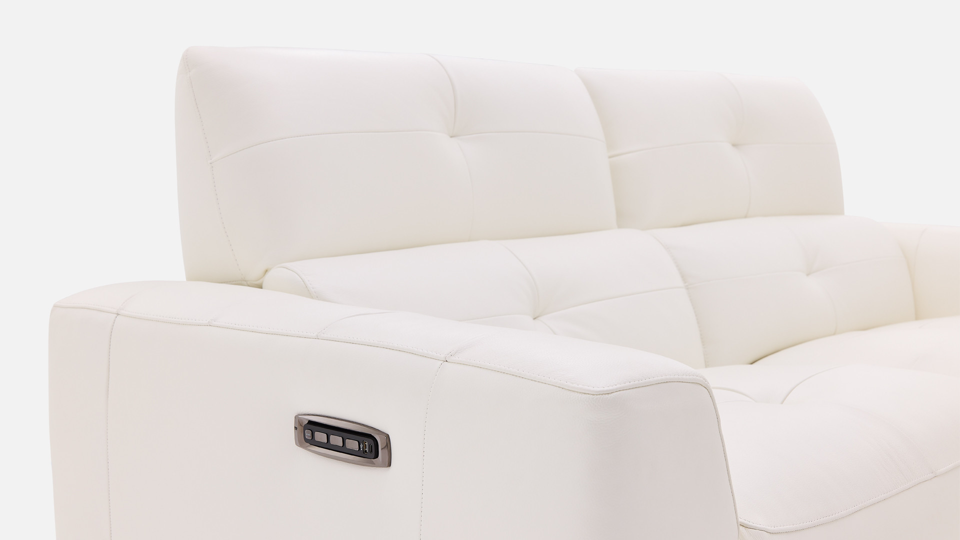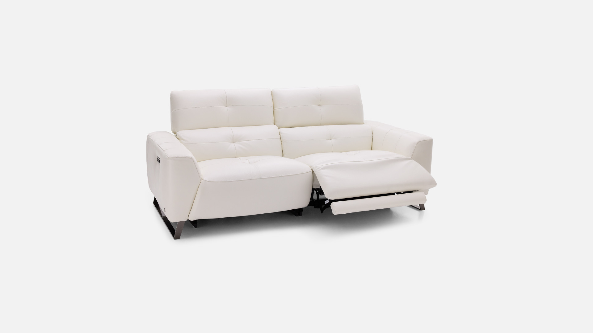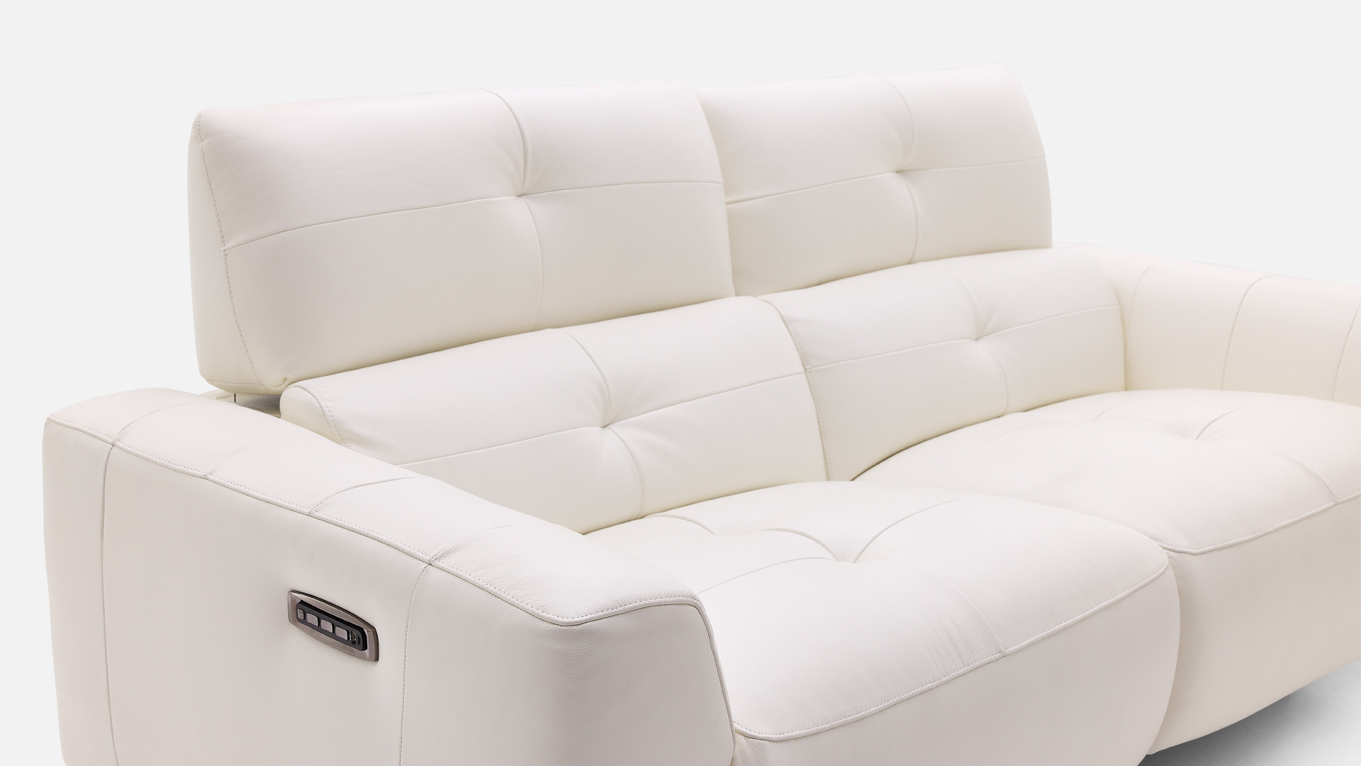 Sa version 4 moteurs (2 par assise) permet de régler indépendamment la têtière télescopique (jusqu’à la position lecture) et l’inclinaison du siège avec son repose-pieds intégré. Avec 6 moteurs, vous réglerez en plus l’intensité du soutien lombaire, comme dans les automobiles haut de gamme.