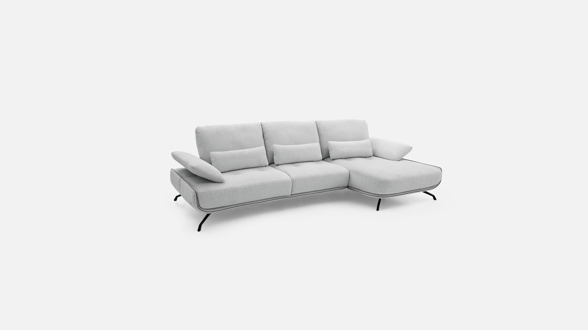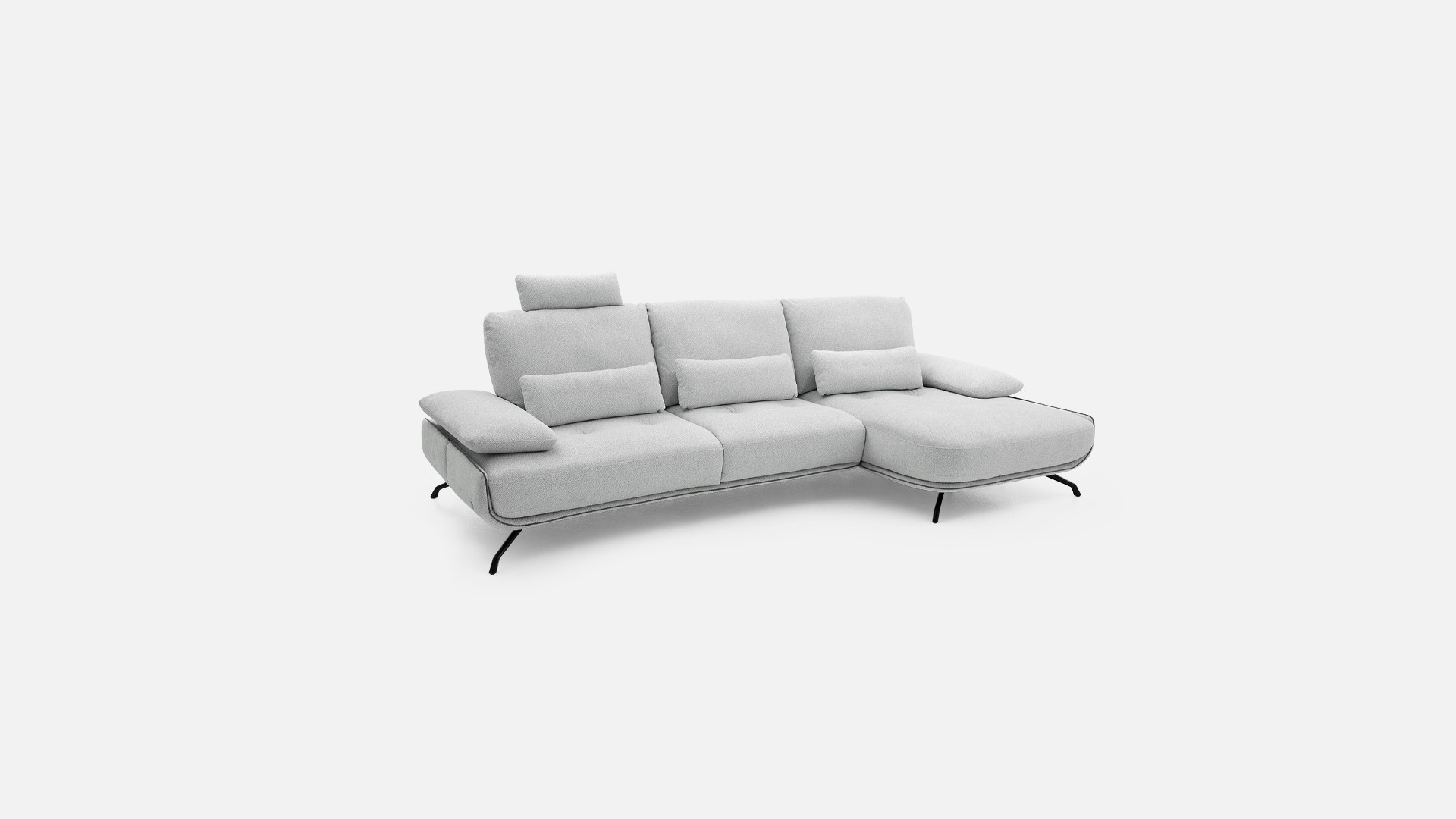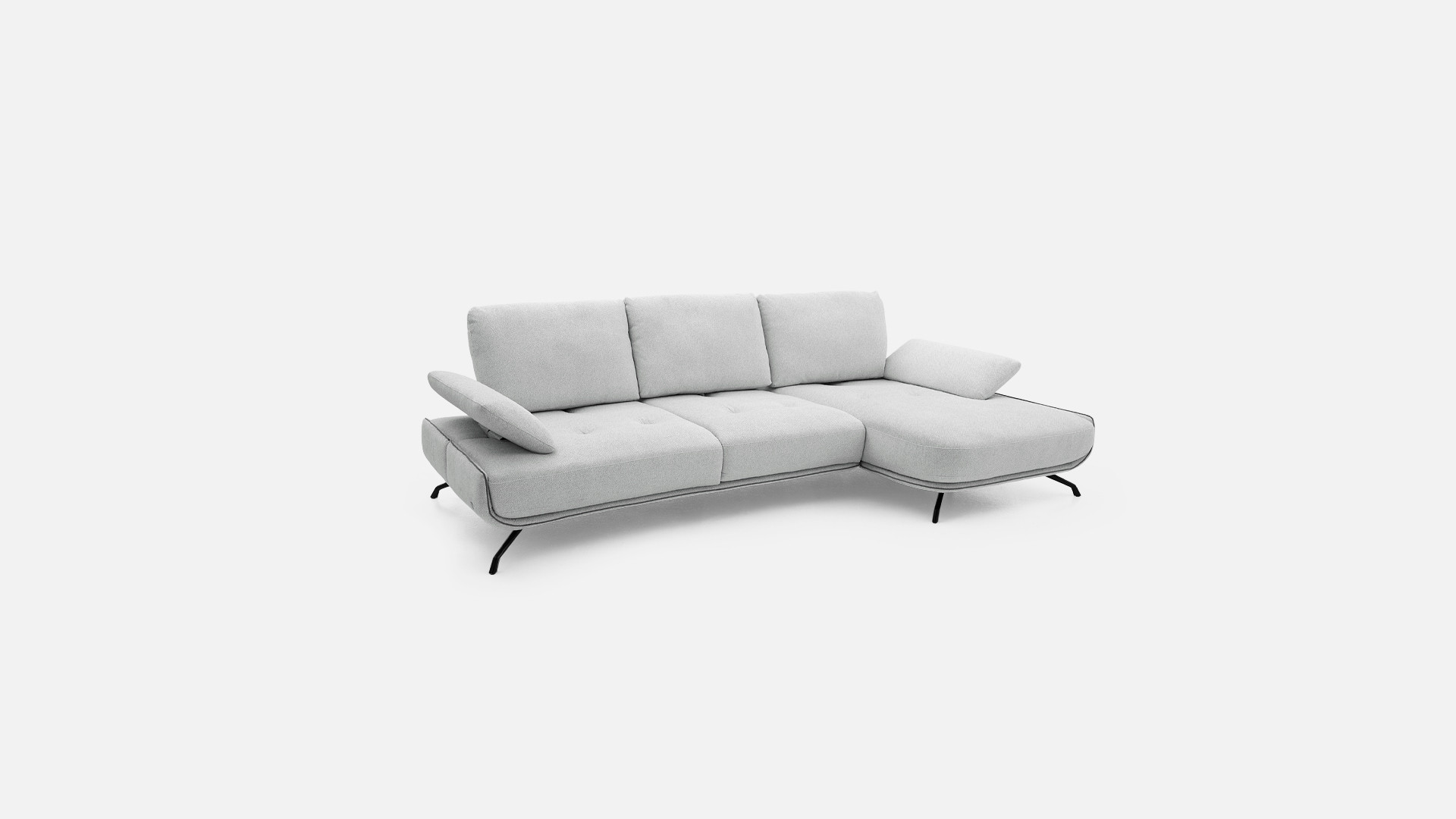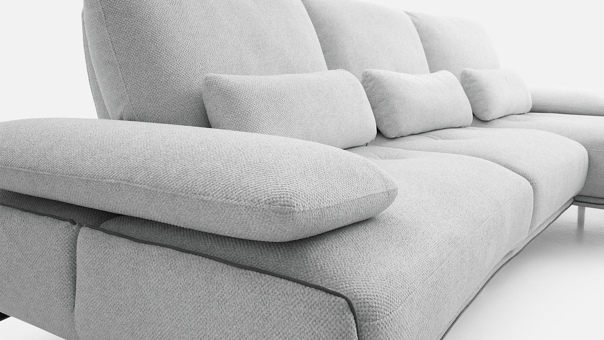 Prix de lancement : canapé d'angle en tissu Petra col. 01 et passepoil cat. 85 Microfibra col. 600.100% polyester hydrofuge.