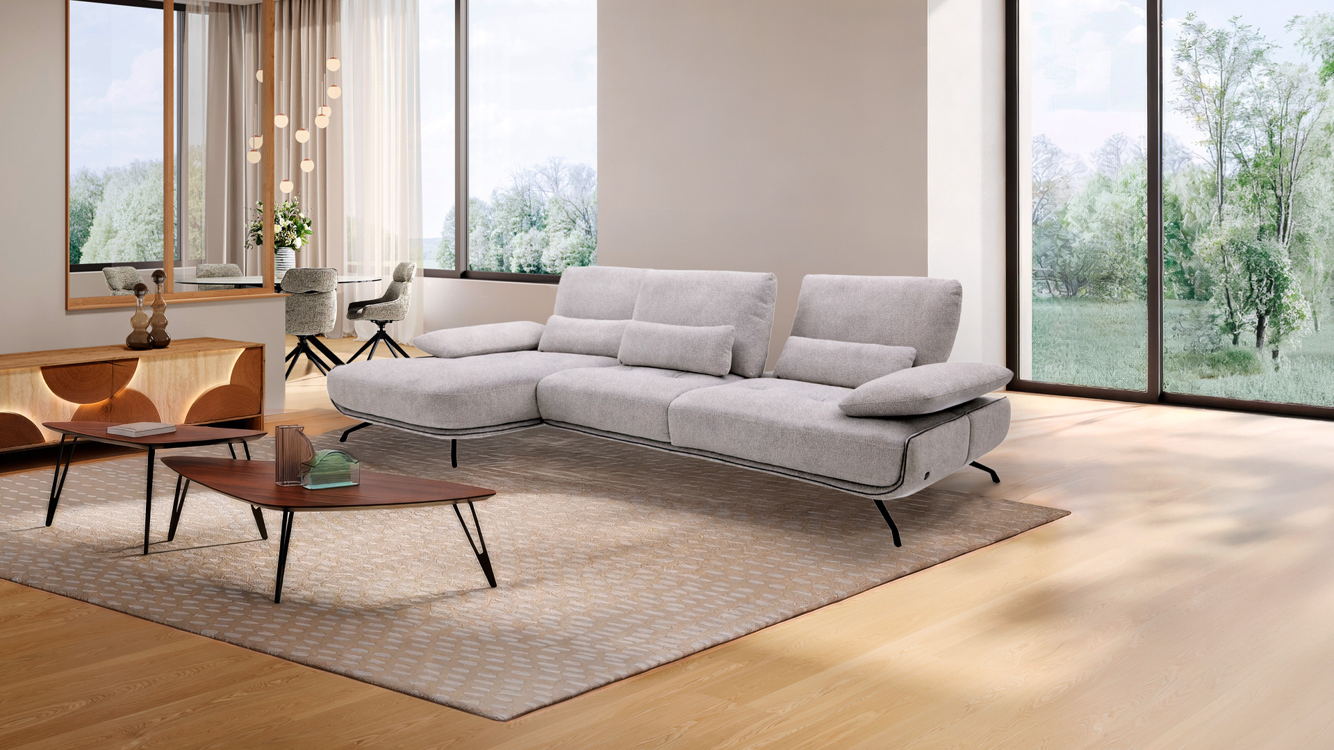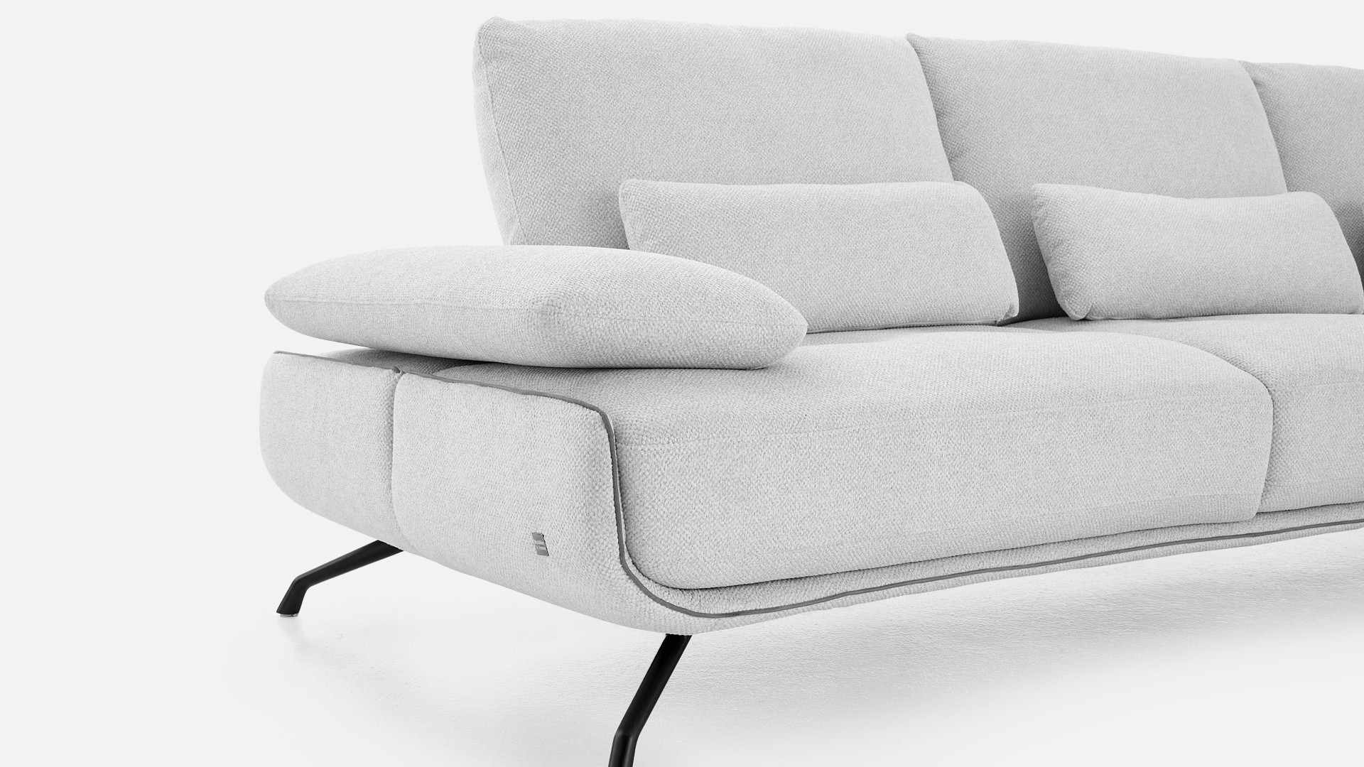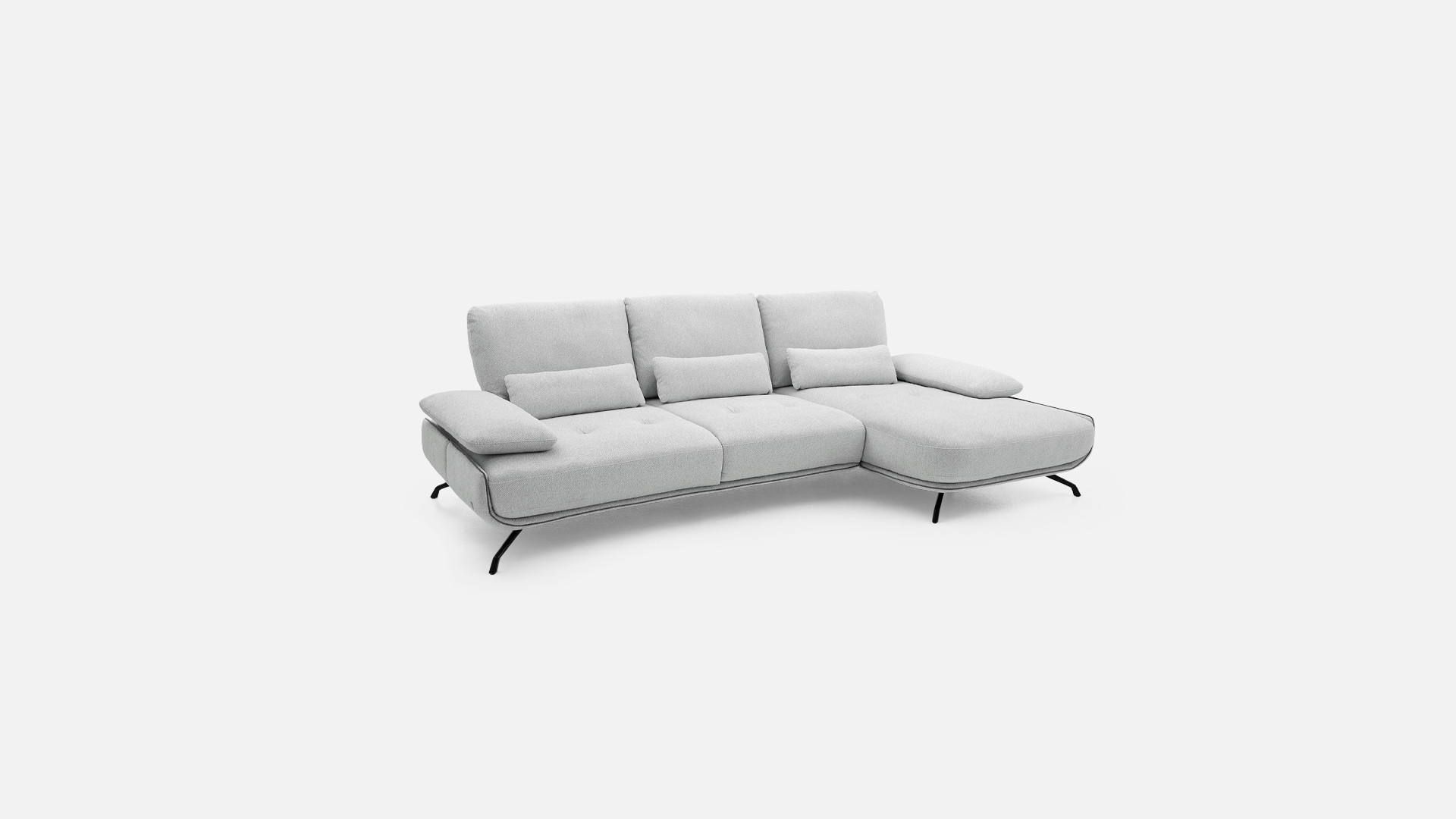Prix de lancement : canapé d'angle en tissu Petra col. 01 et passepoil cat. 85 Microfibra col. 600.100% polyester hydrofuge.