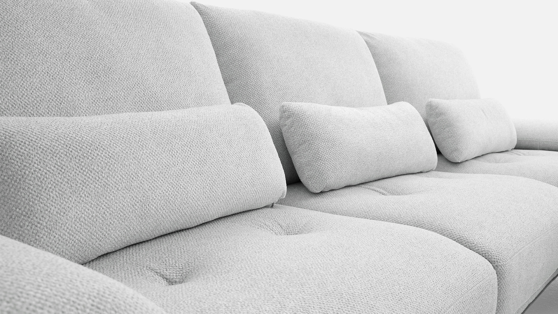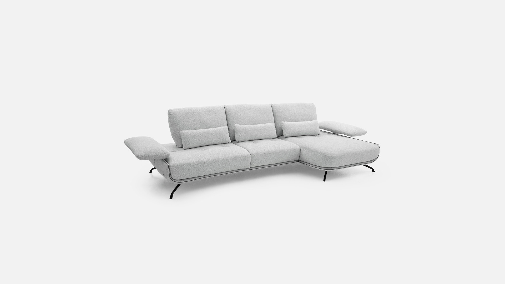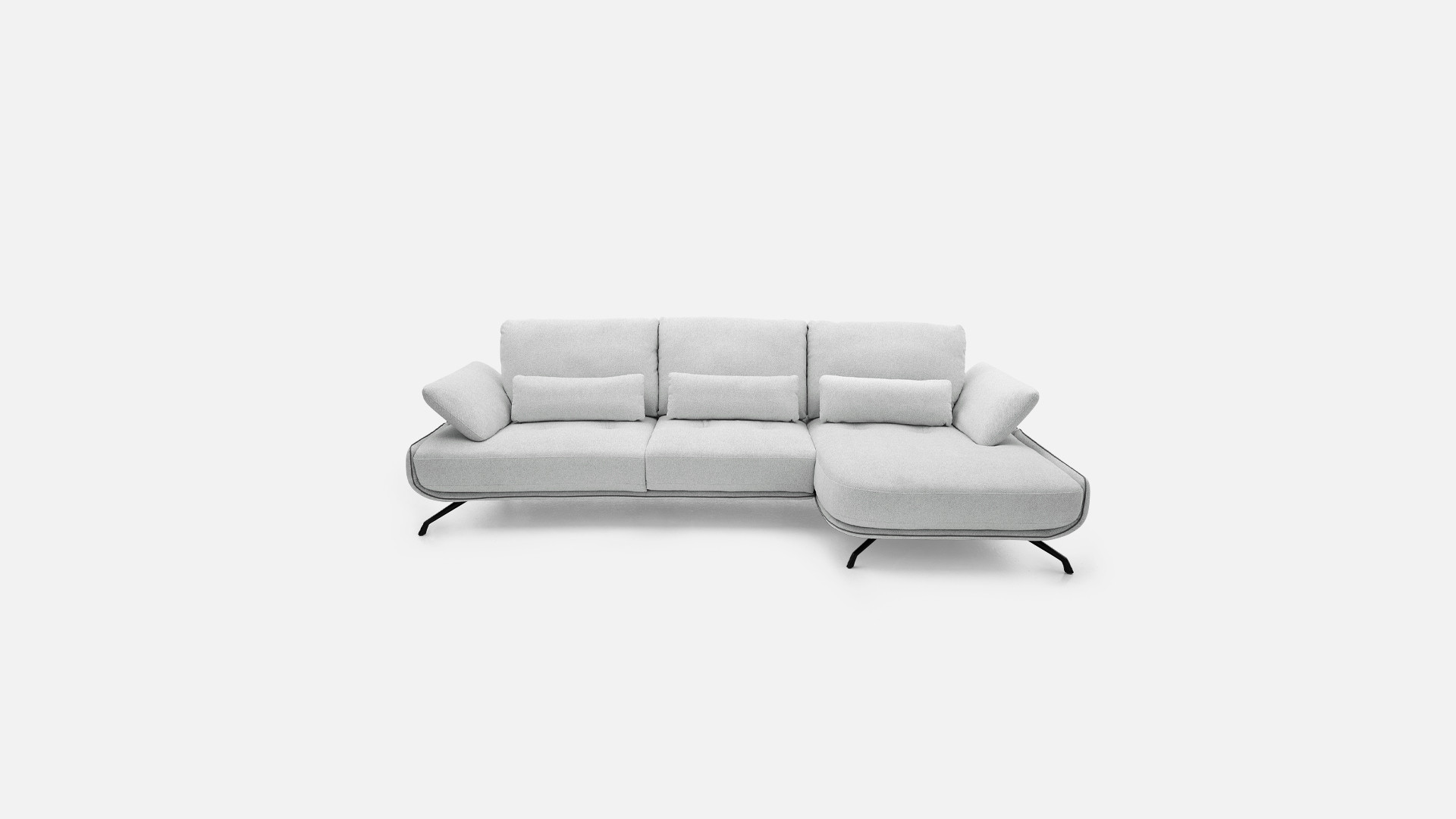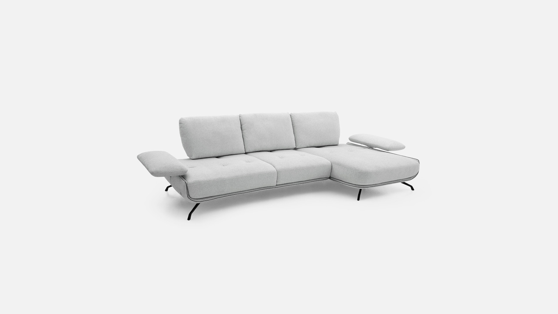 Prix de lancement : canapé d'angle en tissu Petra col. 01 et passepoil cat. 85 Microfibra col. 600.100% polyester hydrofuge.