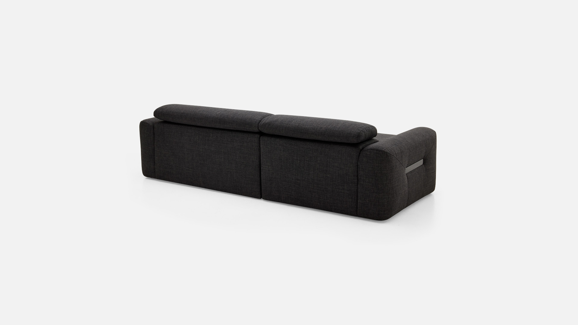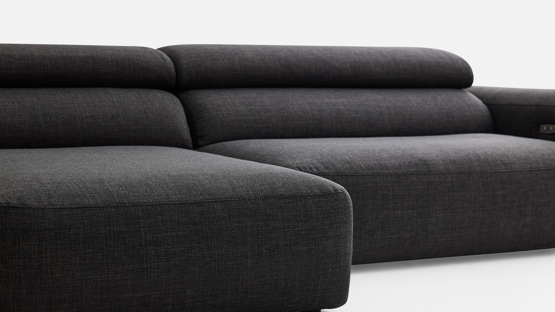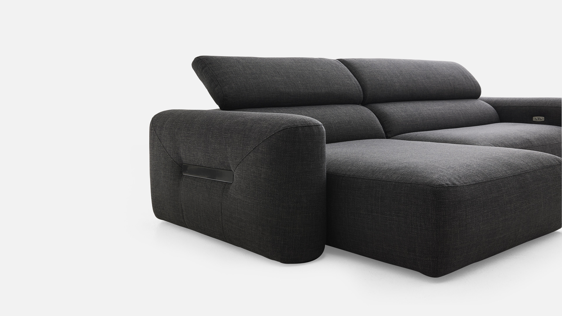 Révélation est un canapé où toute la famille peut s’allonger devant ses séries préférées et qui se replie sans effort pour libérer l’espace. Sa grande assise motorisée s’étend de 50 cm jusqu’à la chaise longue, formant un vrai lit d’appoint à offrir à vos invités.