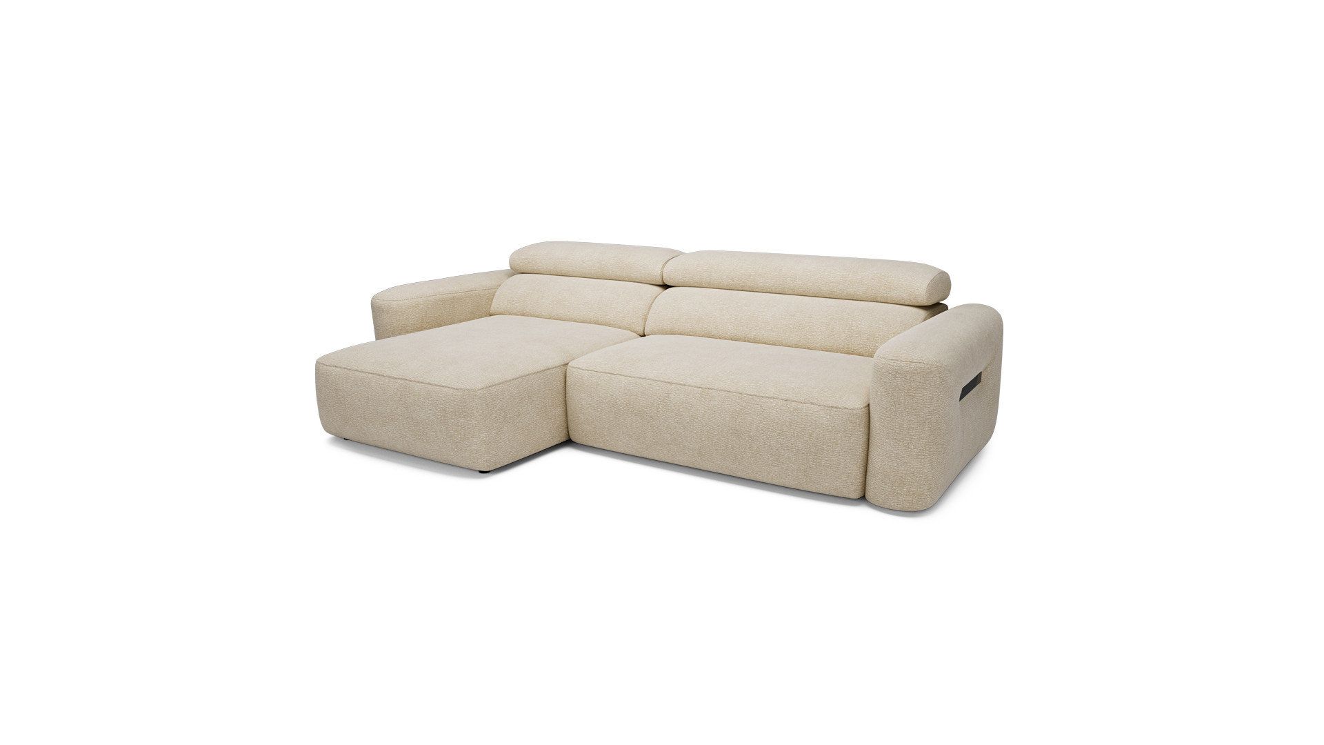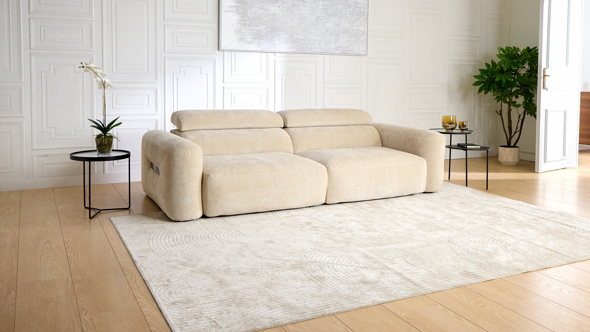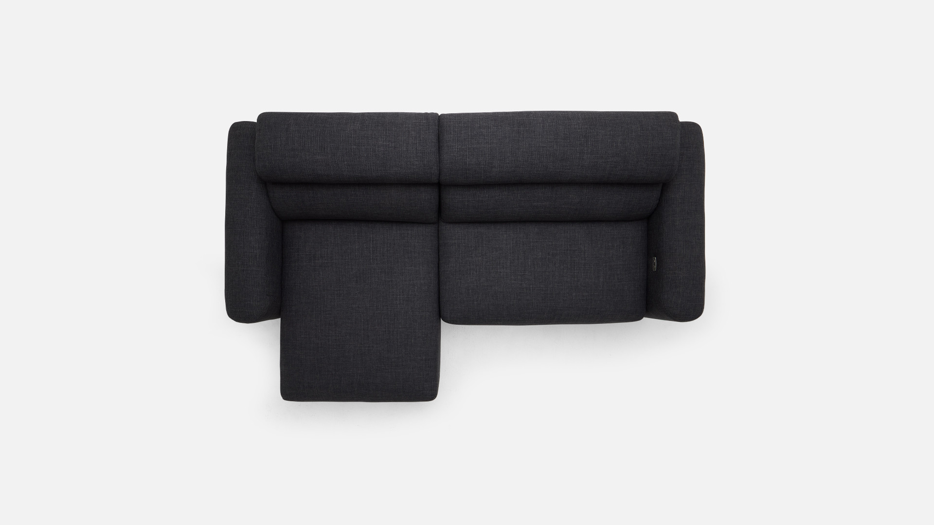 Révélation est un canapé où toute la famille peut s’allonger devant ses séries préférées et qui se replie sans effort pour libérer l’espace. Sa grande assise motorisée s’étend de 50 cm jusqu’à la chaise longue, formant un vrai lit d’appoint à offrir à vos invités.
