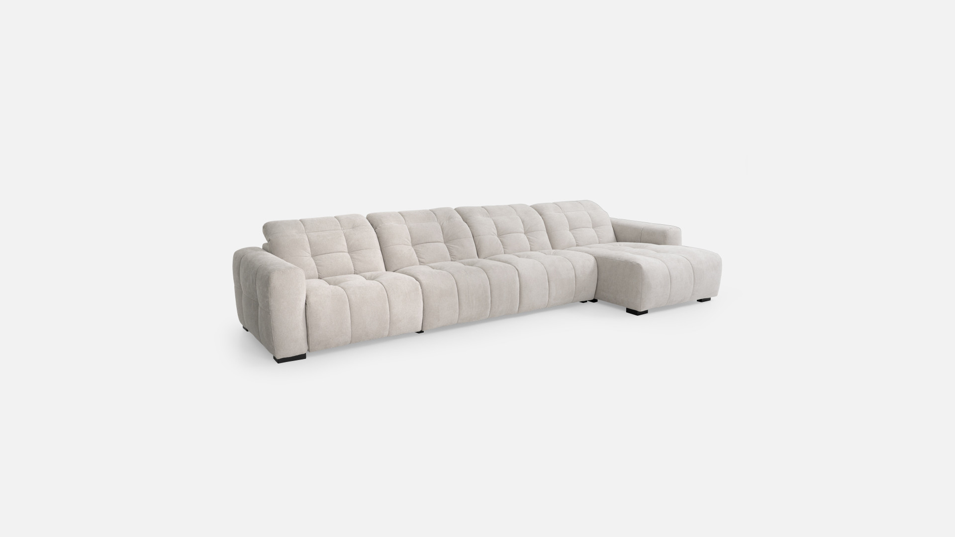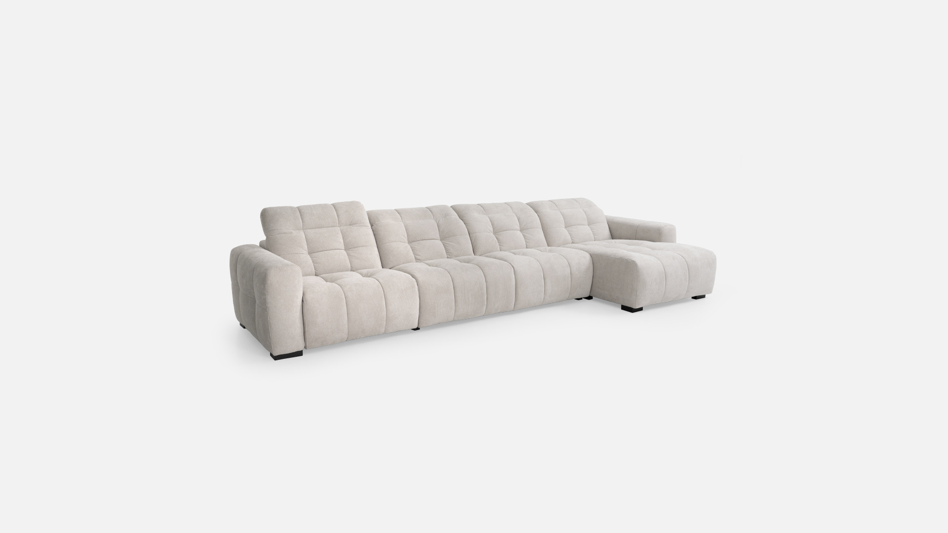 Garnissage des dossiers et têtières en mousse extra souple HR polyuréthane densité 30 kg/m3, et rembourrage en ouate ép. 3.5 cm