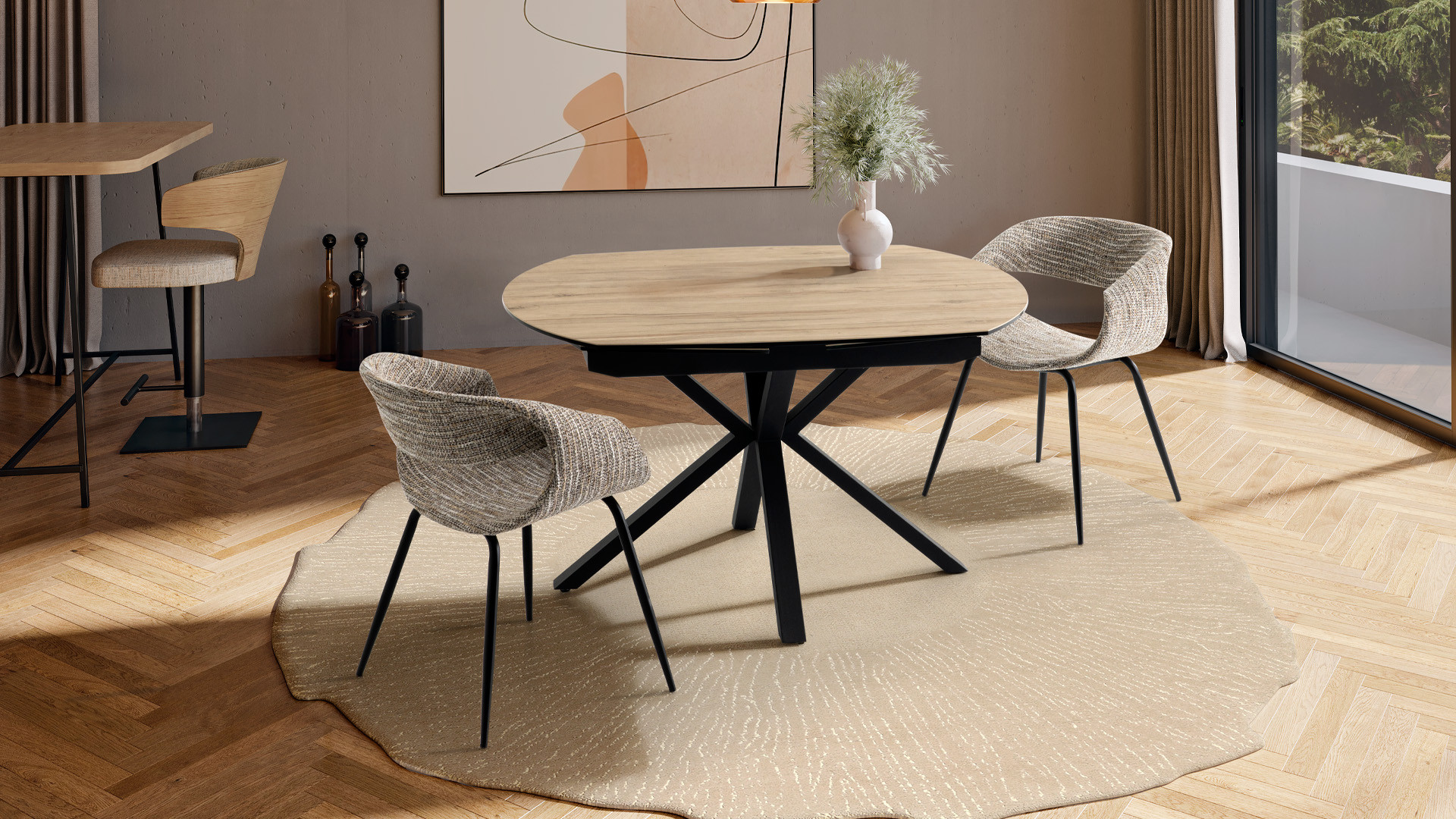 Réalisable en tissu bouclé, chiné ou tweed