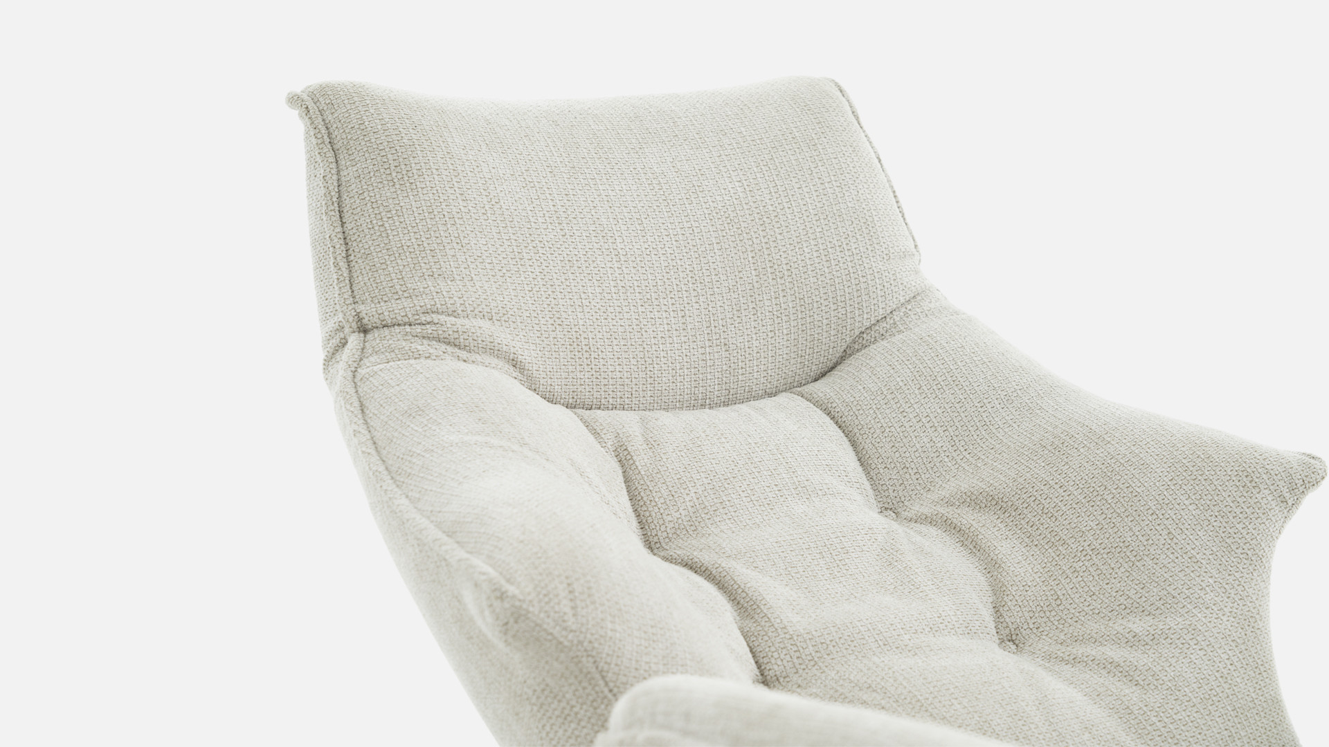 Garnissage du dossier en mousse DUOTECH (polyuréthane densité 25 kg/m3 + mousse intelligente (clever foam) densité 38 kg/m3)