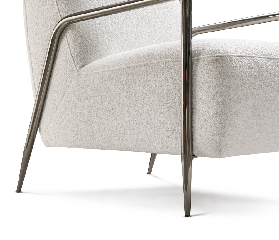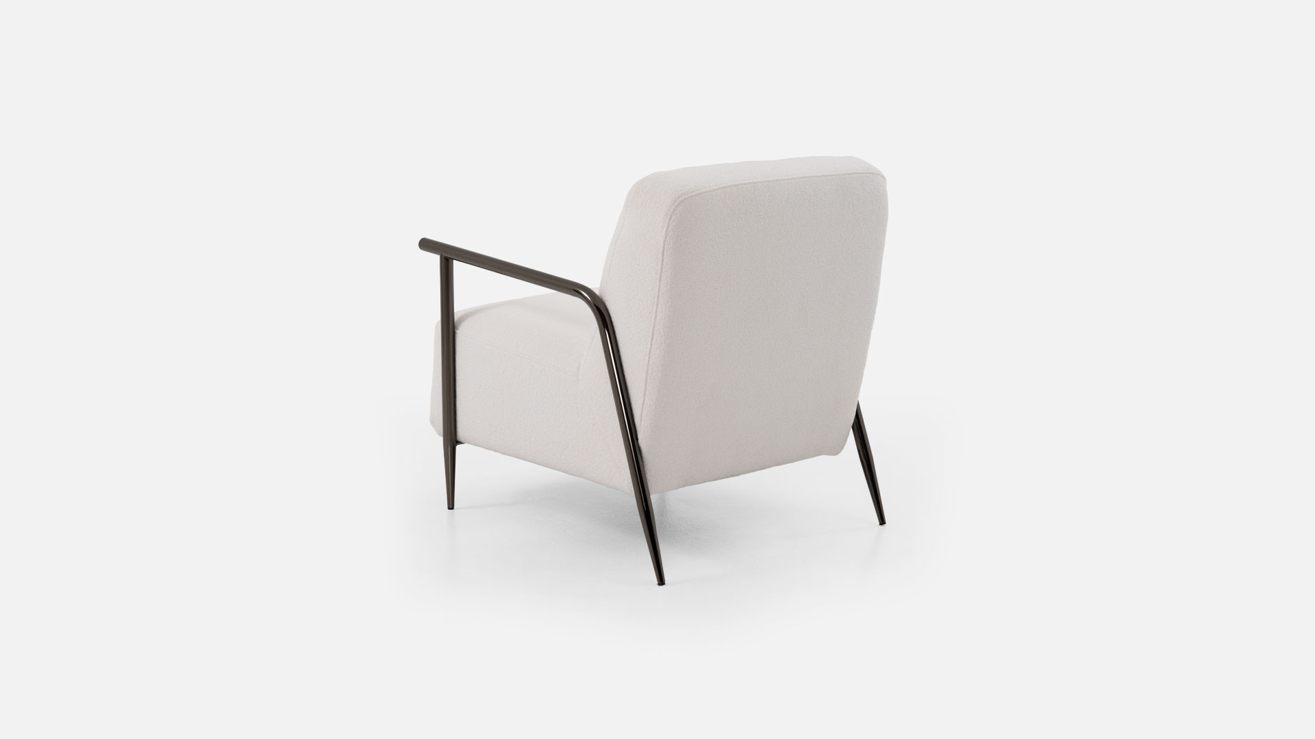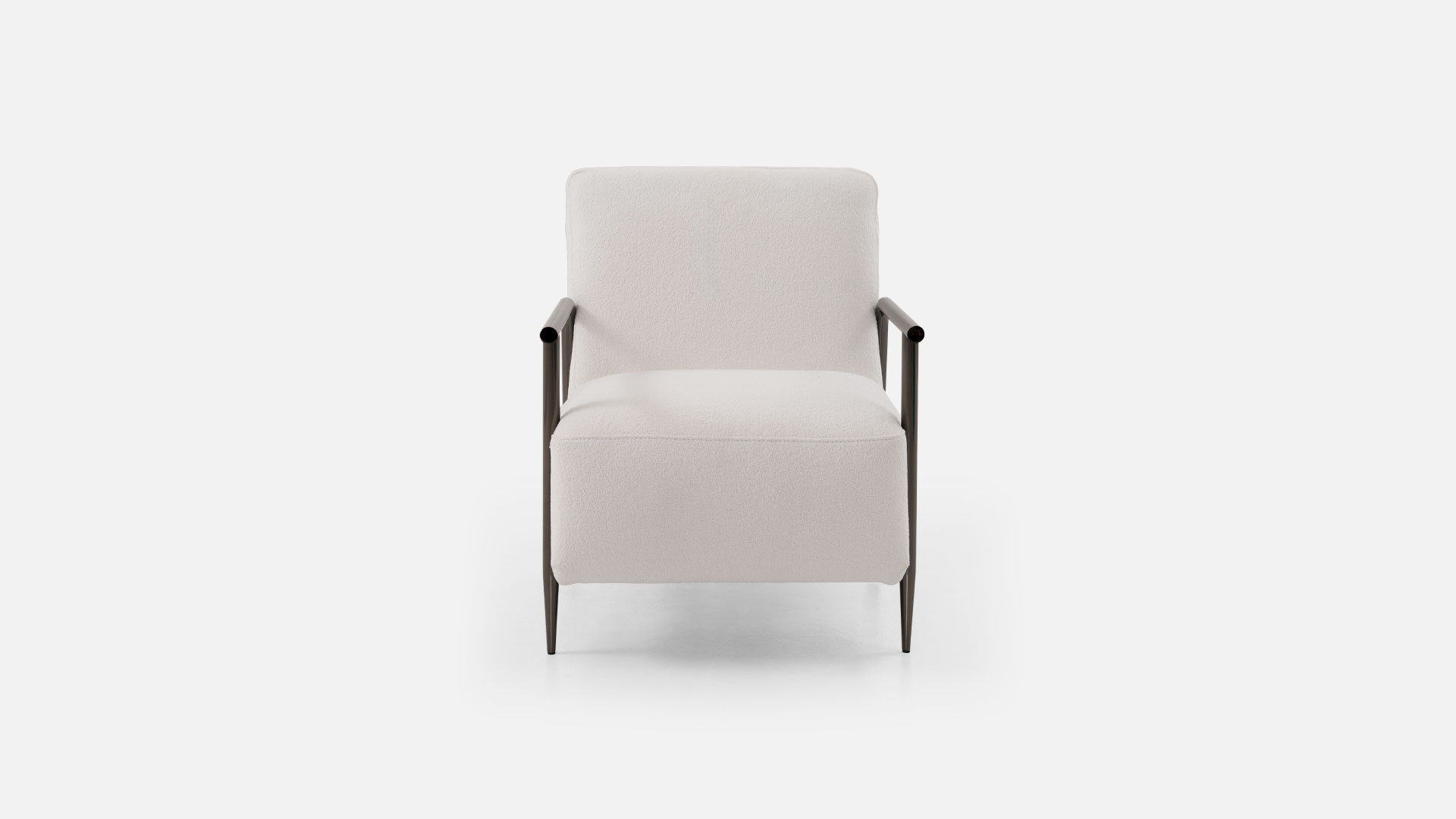Garnissage de l'assise en mousse polyuréthane densité 28 kg/m3 et mousse à mémoire de forme densité 50 kg/m3.