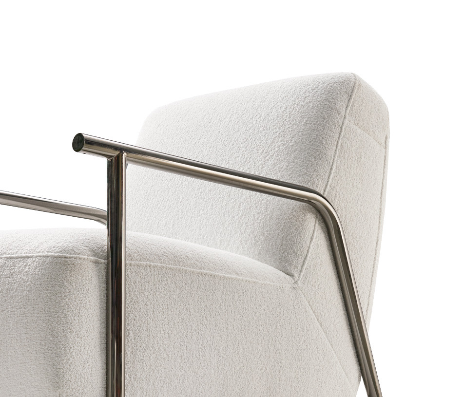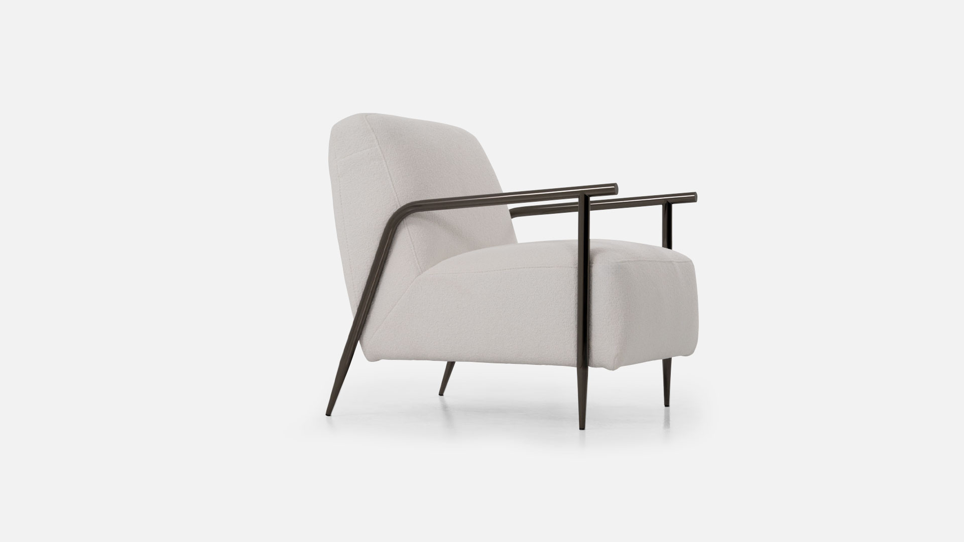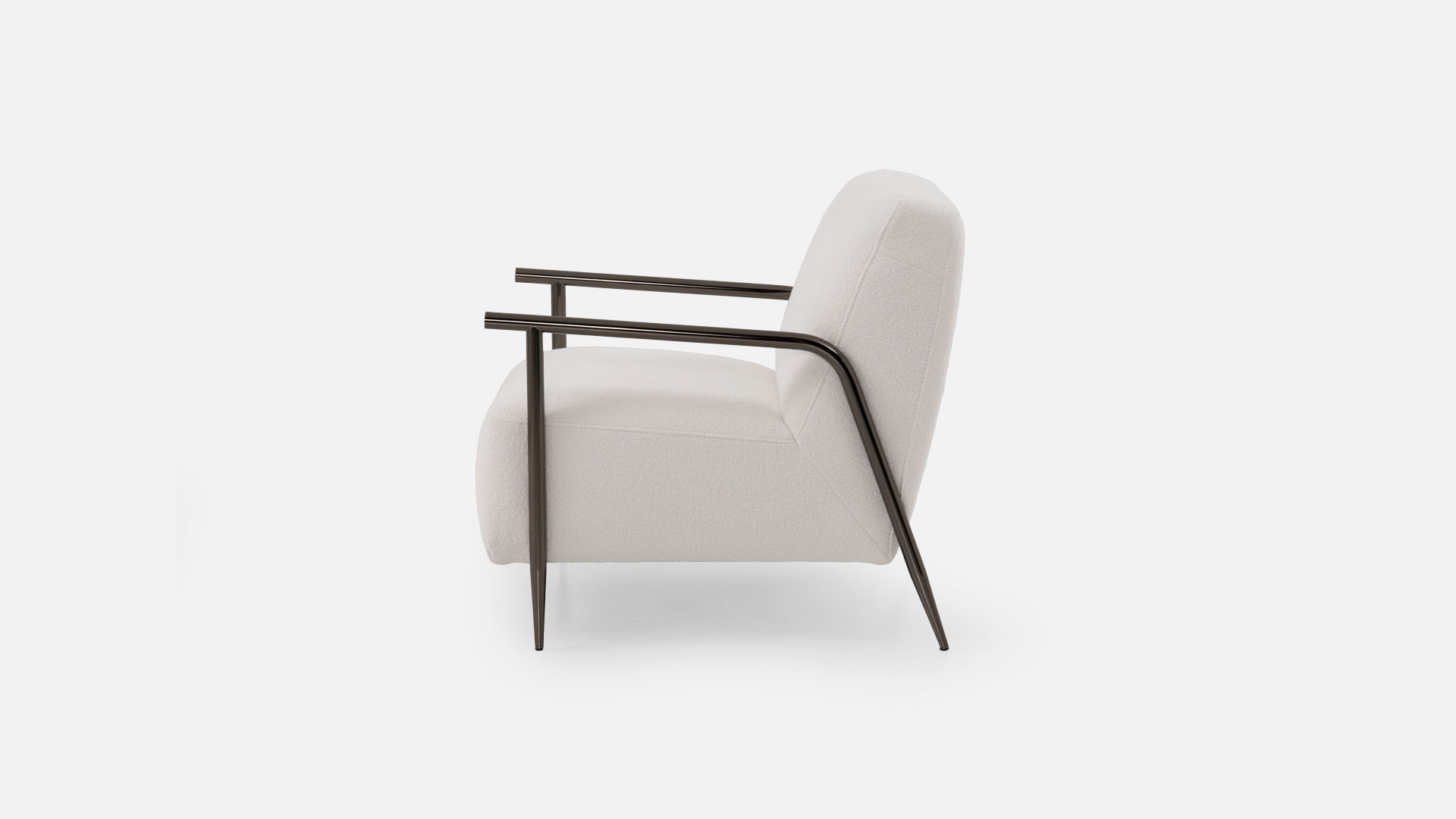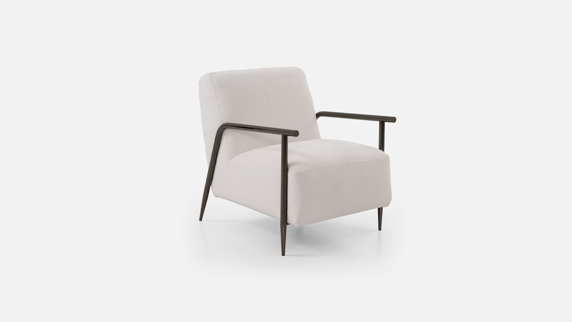 Garnissage de l'assise en mousse polyuréthane densité 28 kg/m3 et mousse à mémoire de forme densité 50 kg/m3.