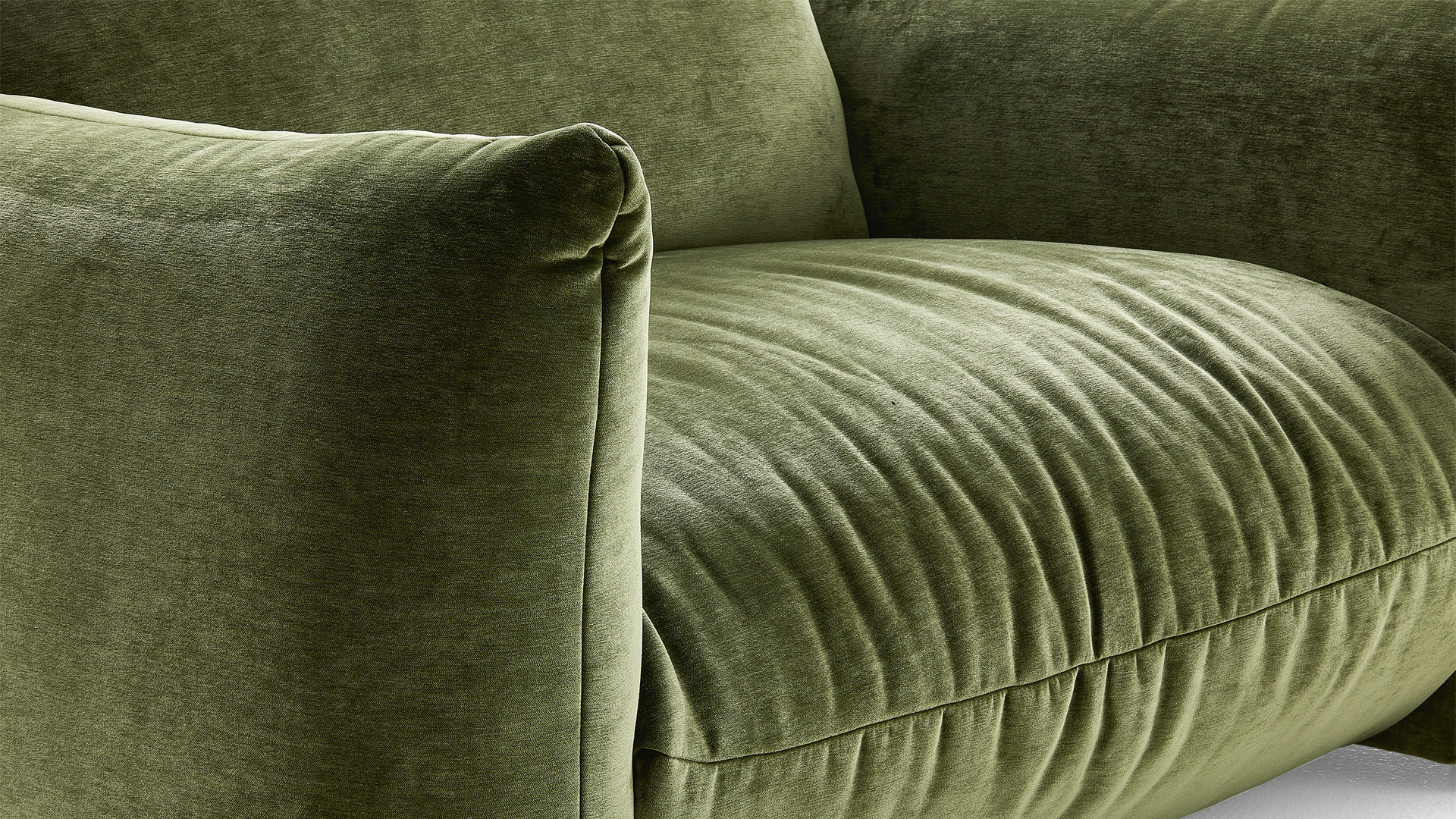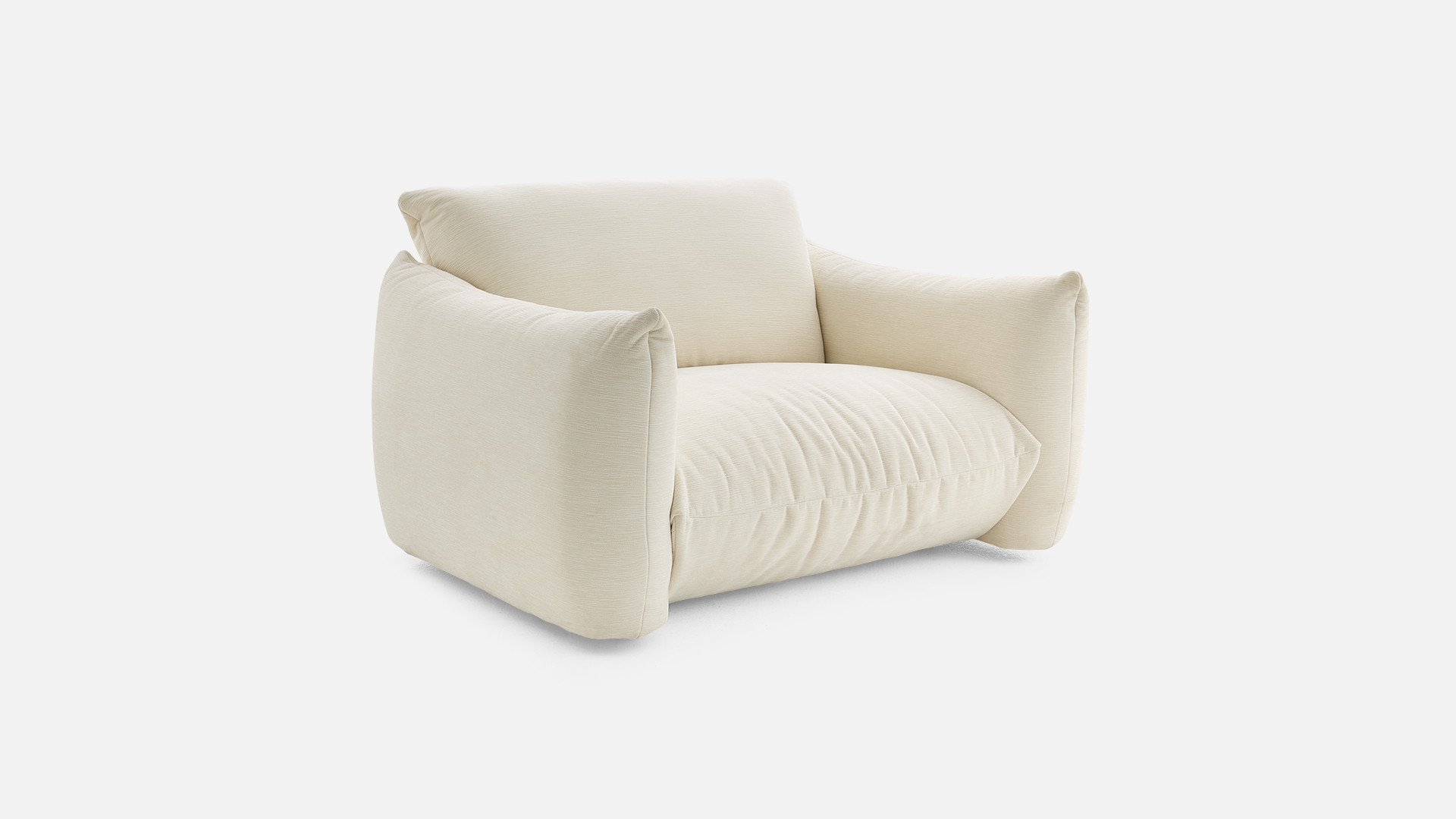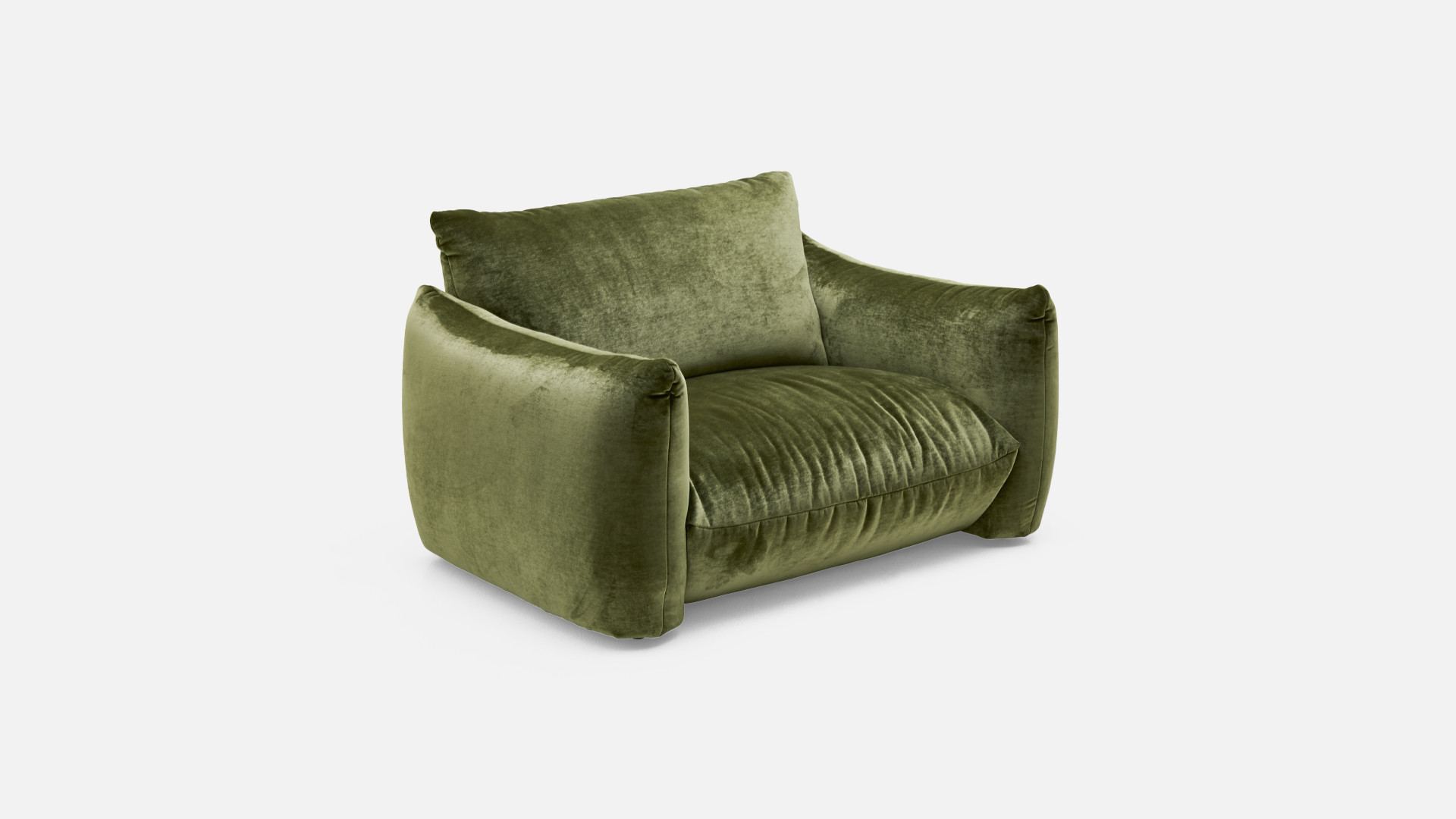 Avec son assise profonde et ses formes enveloppantes, le fauteuil VELVETTE offre un confort immédiat. Son format généreux, proche d’un petit canapé, permet de s’installer librement, seul ou à deux. Ce fauteuil large et confortable devient un véritable espace de détente au quotidien, parfait pour lire, se relaxer ou prolonger les moments de convivialité dans le salon.