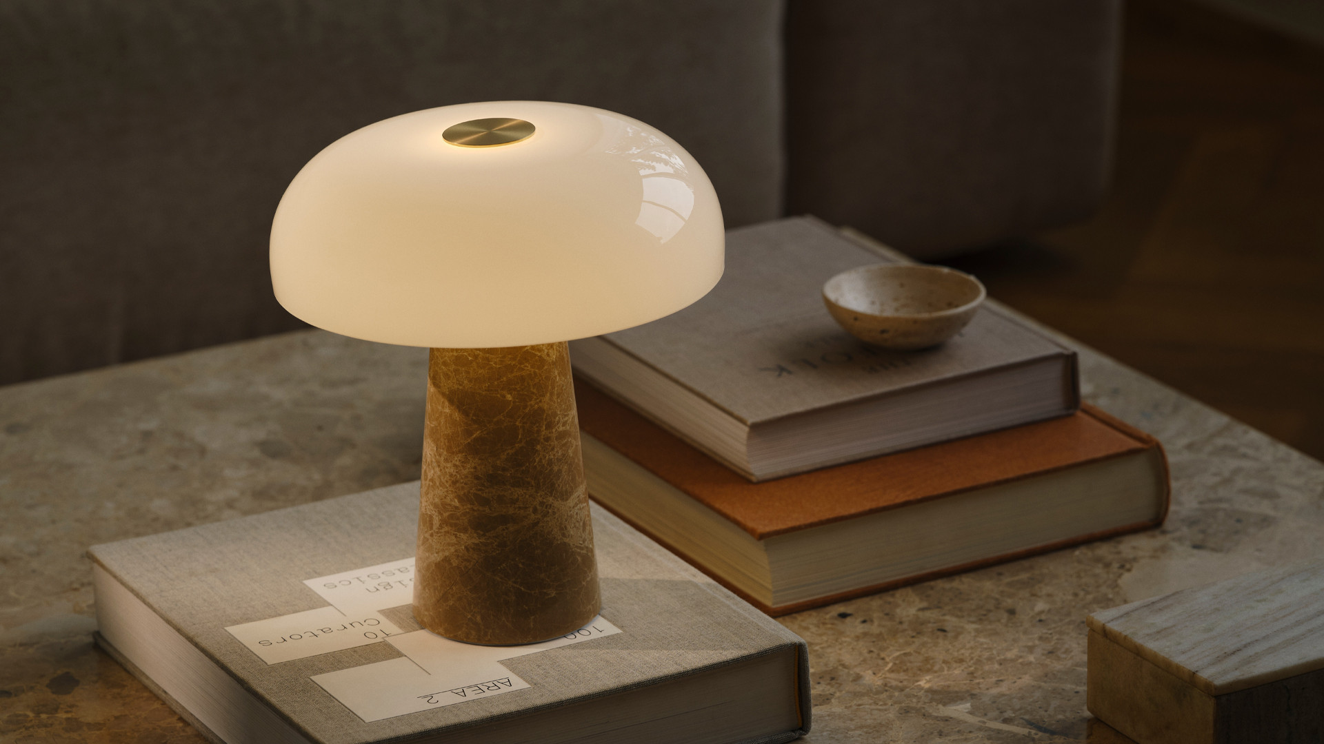 Cette lampe à poser au design sophistiqué marie marbre, verre opalin et laiton brossé, offrant une présence à la fois élégante et raffinée. Elle diffuse une lumière douce qui crée une ambiance chaleureuse dans les espaces intimes ou les recoins déco. Compacte et subtilement sculpturale, Glossy Mini incarne une esthétique contemporaine intemporelle qui enrichit chaque intérieur avec style.