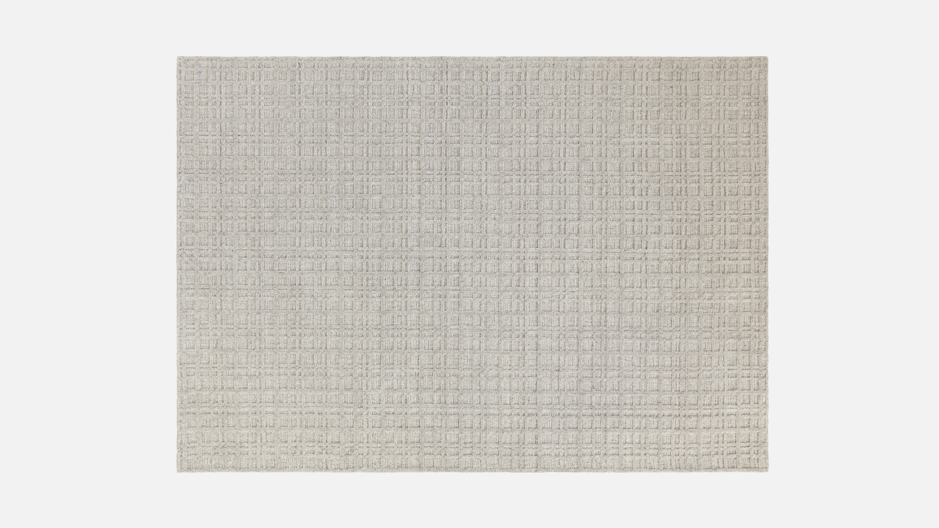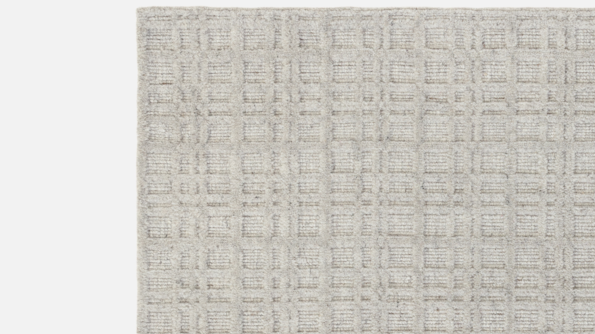 Tatch est tissé à la main en laine non teinte, combinant une base en boucle basse et une surface à poils plus hauts qui forment une grille multidimensionnelle raffinée. Sa teinte greige, délicate fusion de beige et de gris, crée une palette douce et équilibrée qui s’harmonise aisément avec tous les intérieurs.