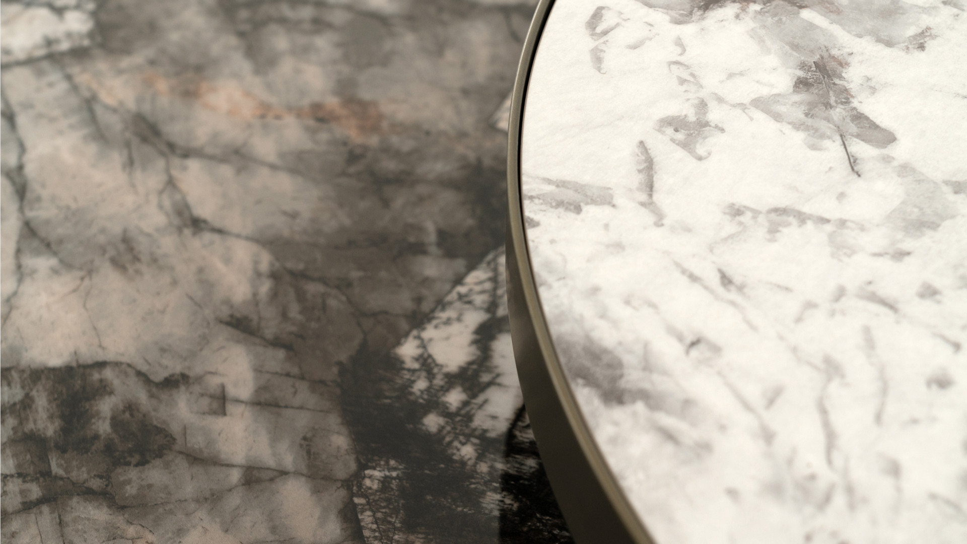 Plateau en céramique brillante épaisseur 3 mm collée sur verre épaisseur 5 mm