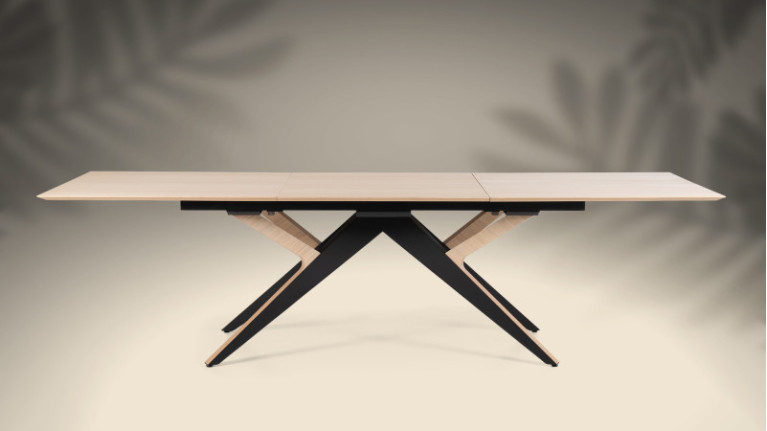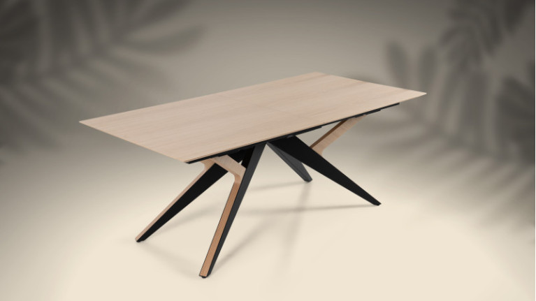 Piétement avec structure métallique de 4 mm, peinture époxy + insert en panneau de fibres de moyenne densité ép. 40 mm avec placage chêne de 1 mm