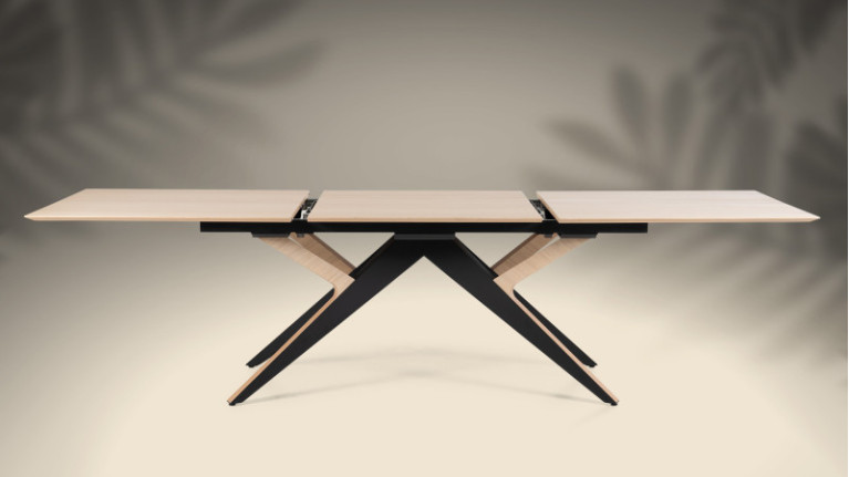 Allonge centrale ouverture portefeuille, en panneau de fibres de moyenne densité ép. 22 mm avec placage chêne ép. 1 mm