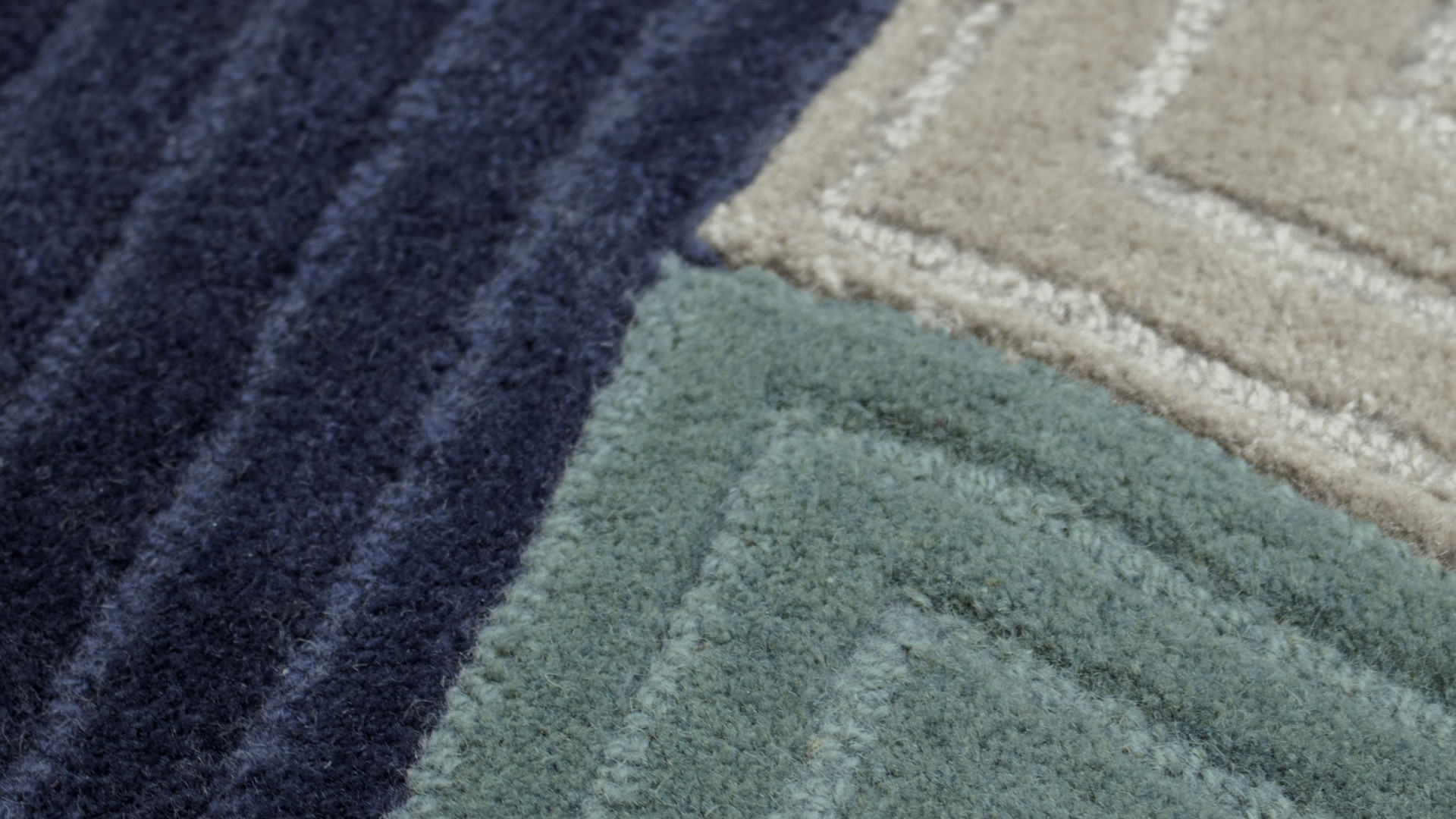Le tapis Pebble déploie un jeu d’ovales entrelacés, comme des formes minérales posées naturellement sur le sol. Son tissage riche et texturé capte la lumière et révèle des nuances profondes de bleu, de gris et de sarcelle, évoquant la mer et la pierre. À la fois enveloppant et graphique, il structure l’espace avec douceur et invite à une atmosphère calme, organique et contemporaine.